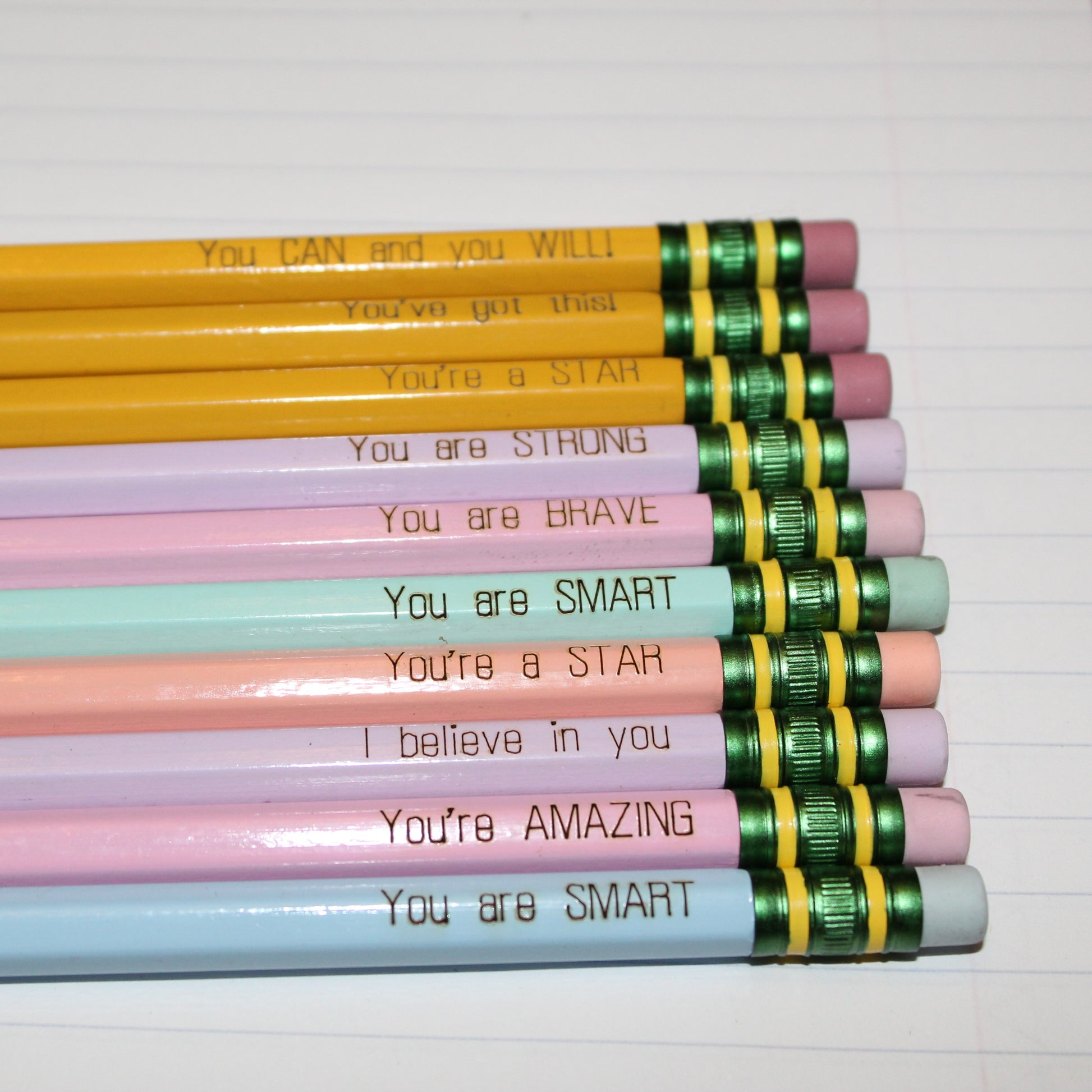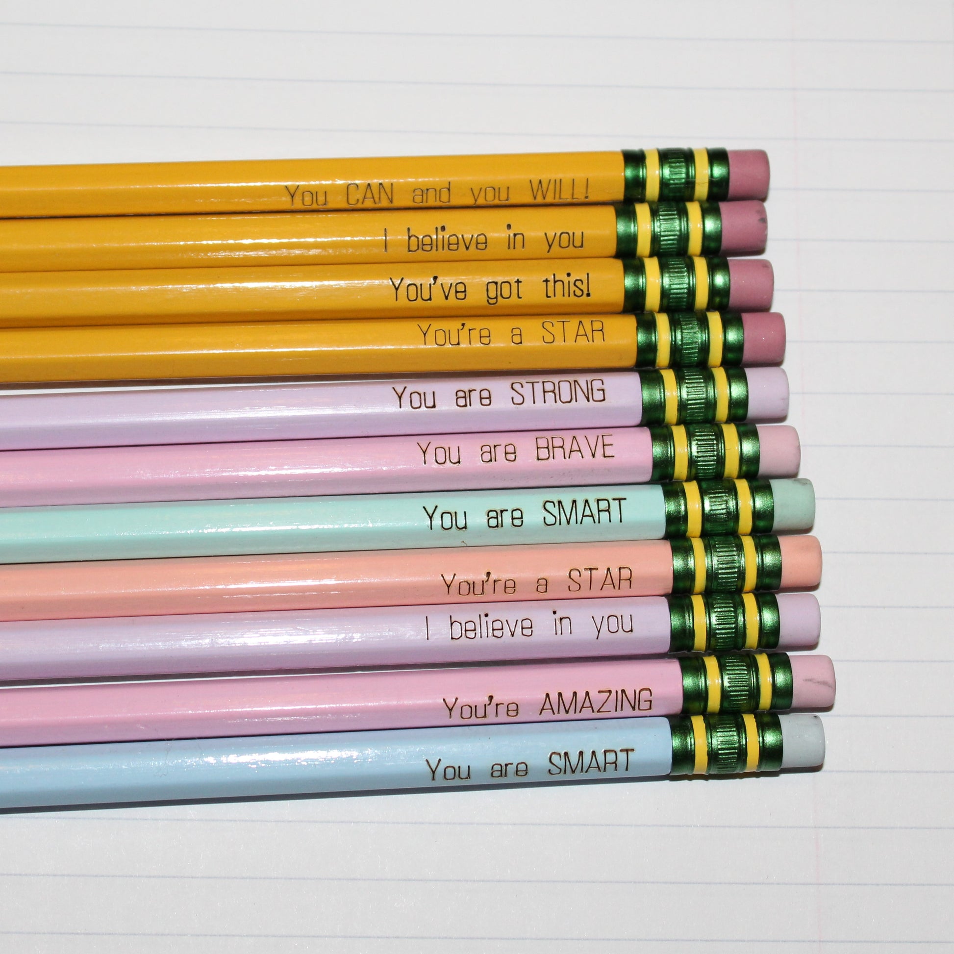 Affirmation Engraved Pencils | Sharpened, Unsharpened, Pastel Options