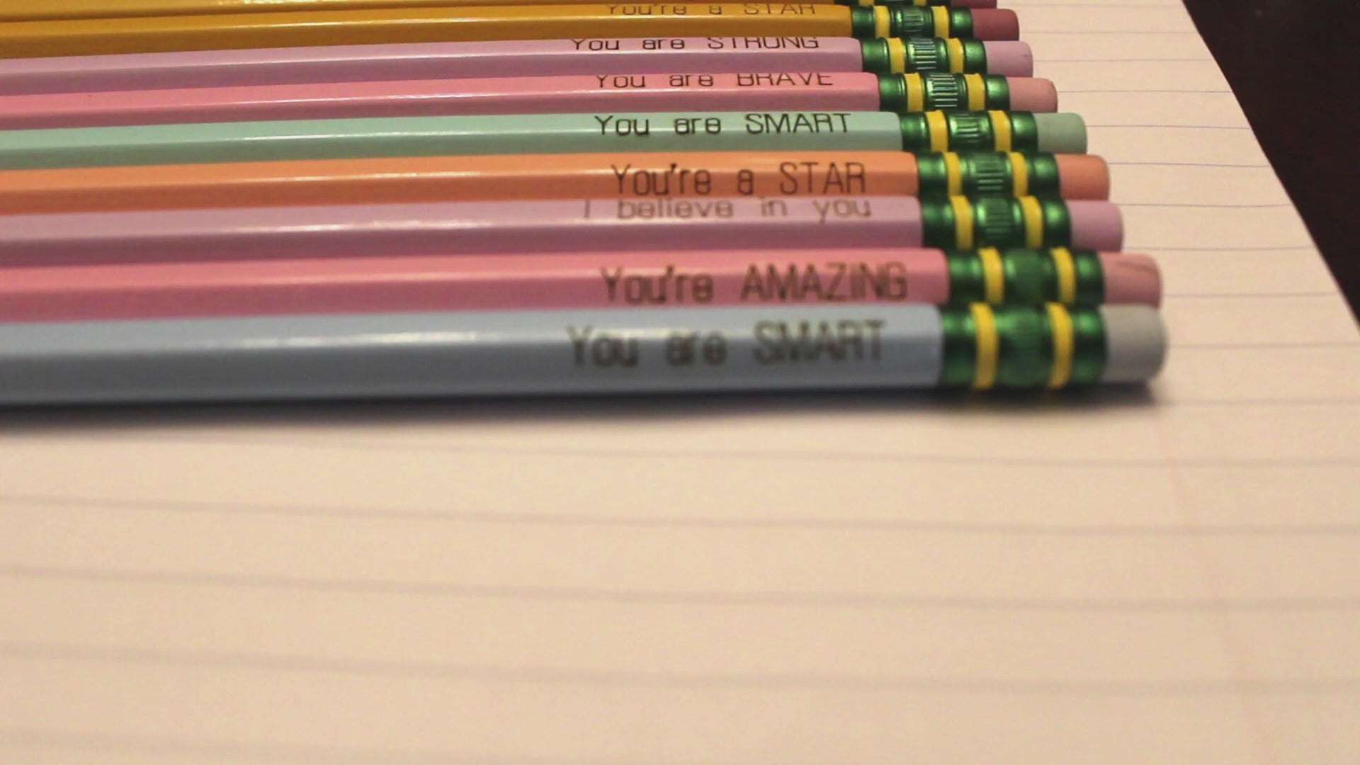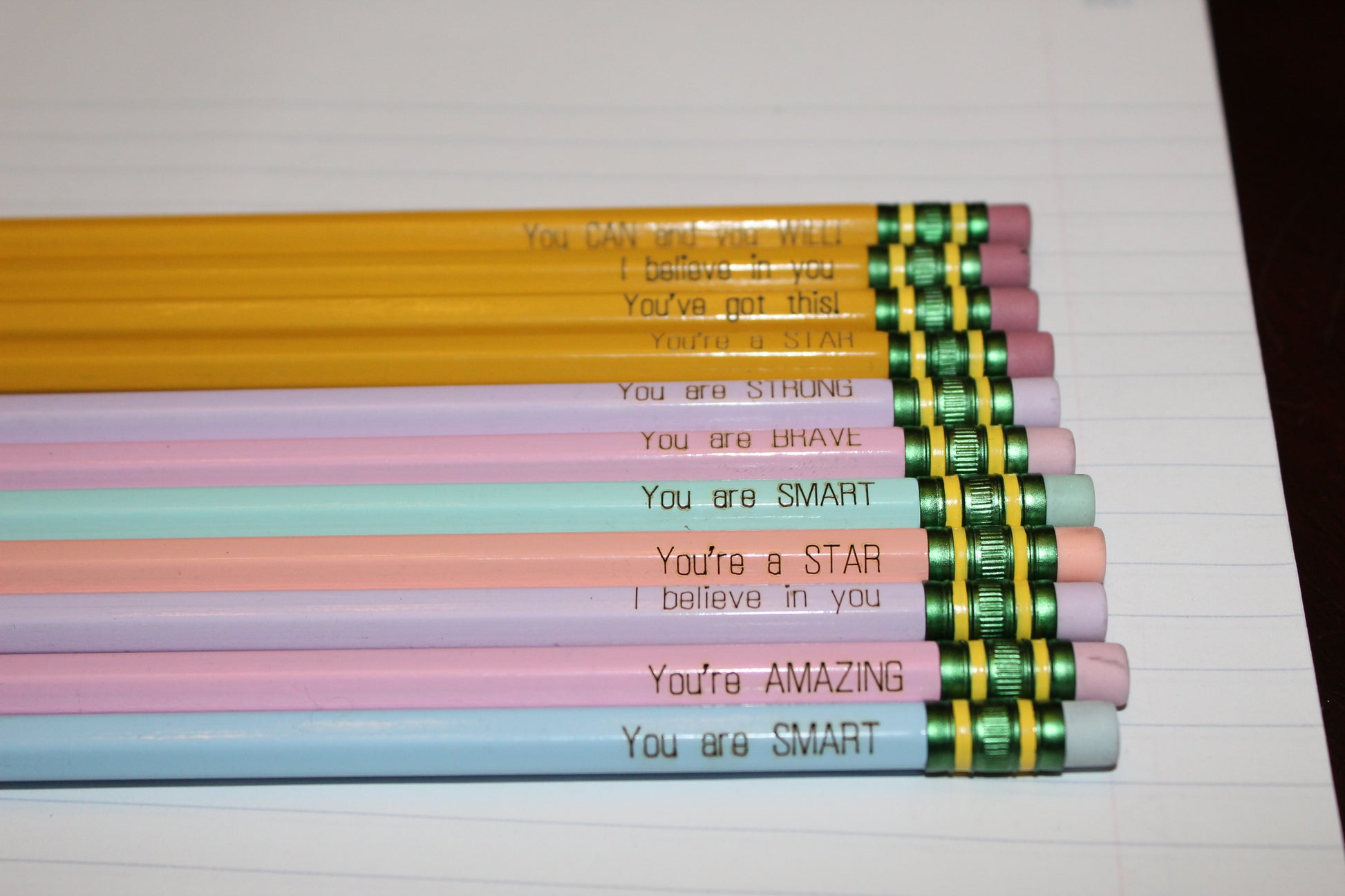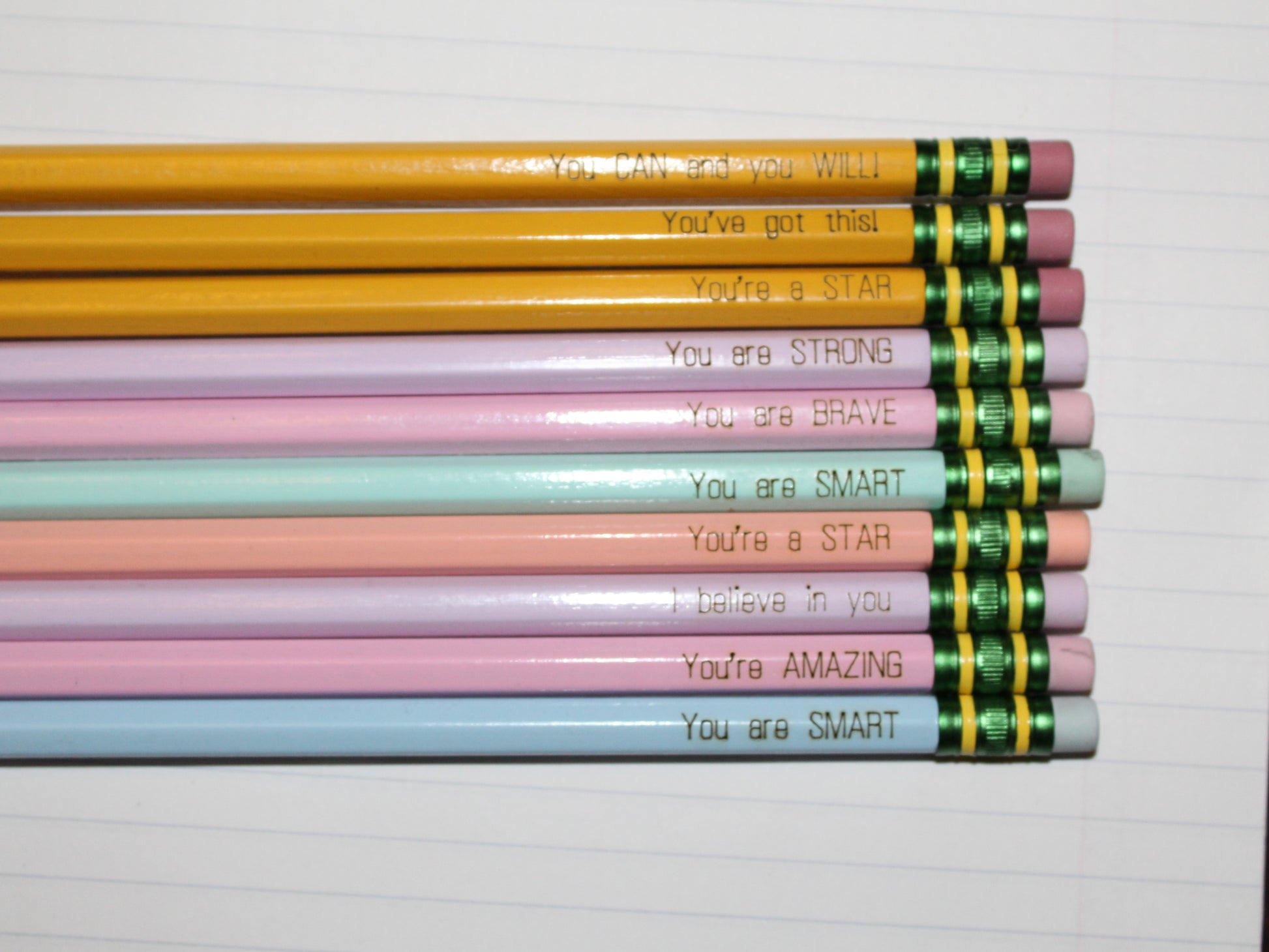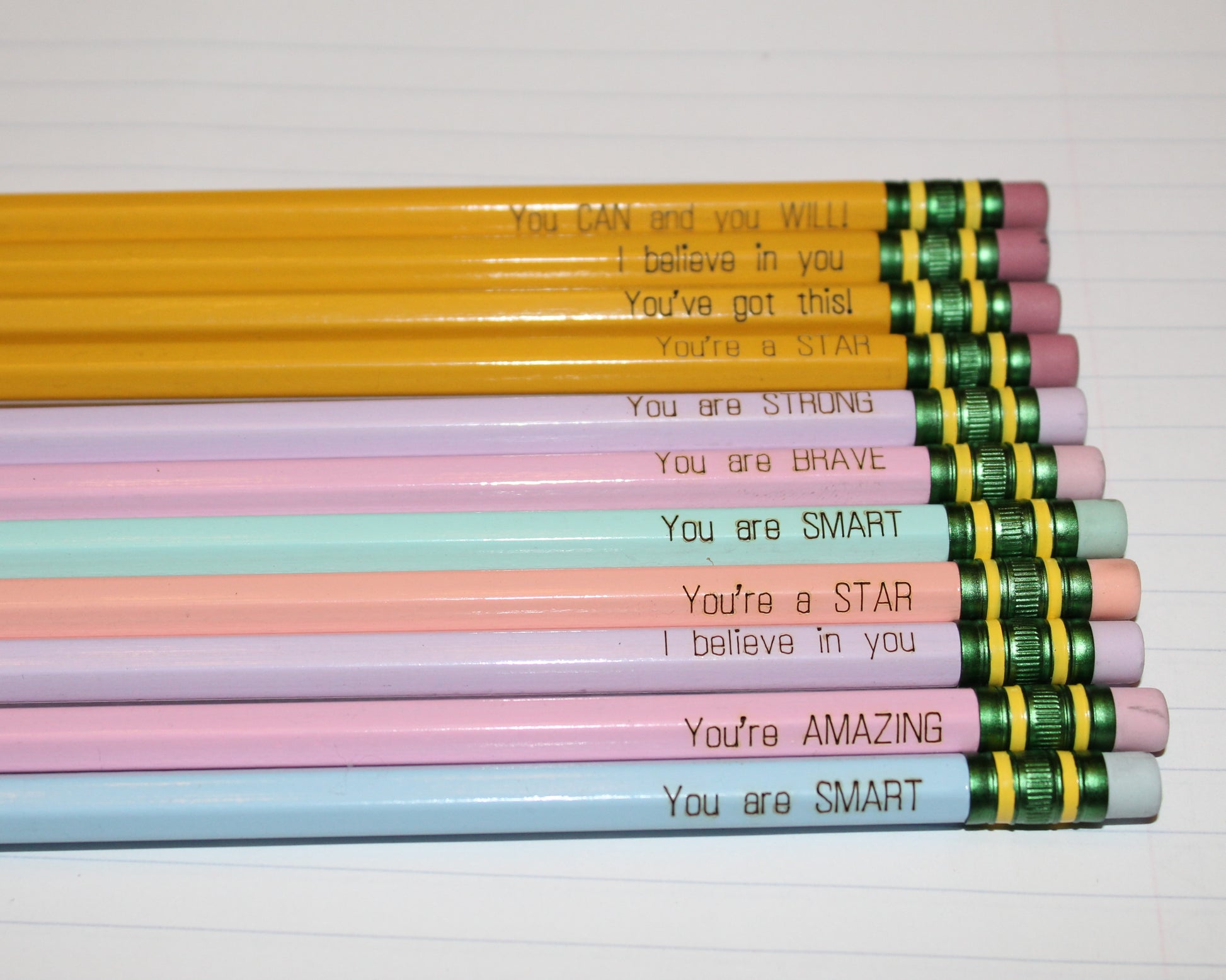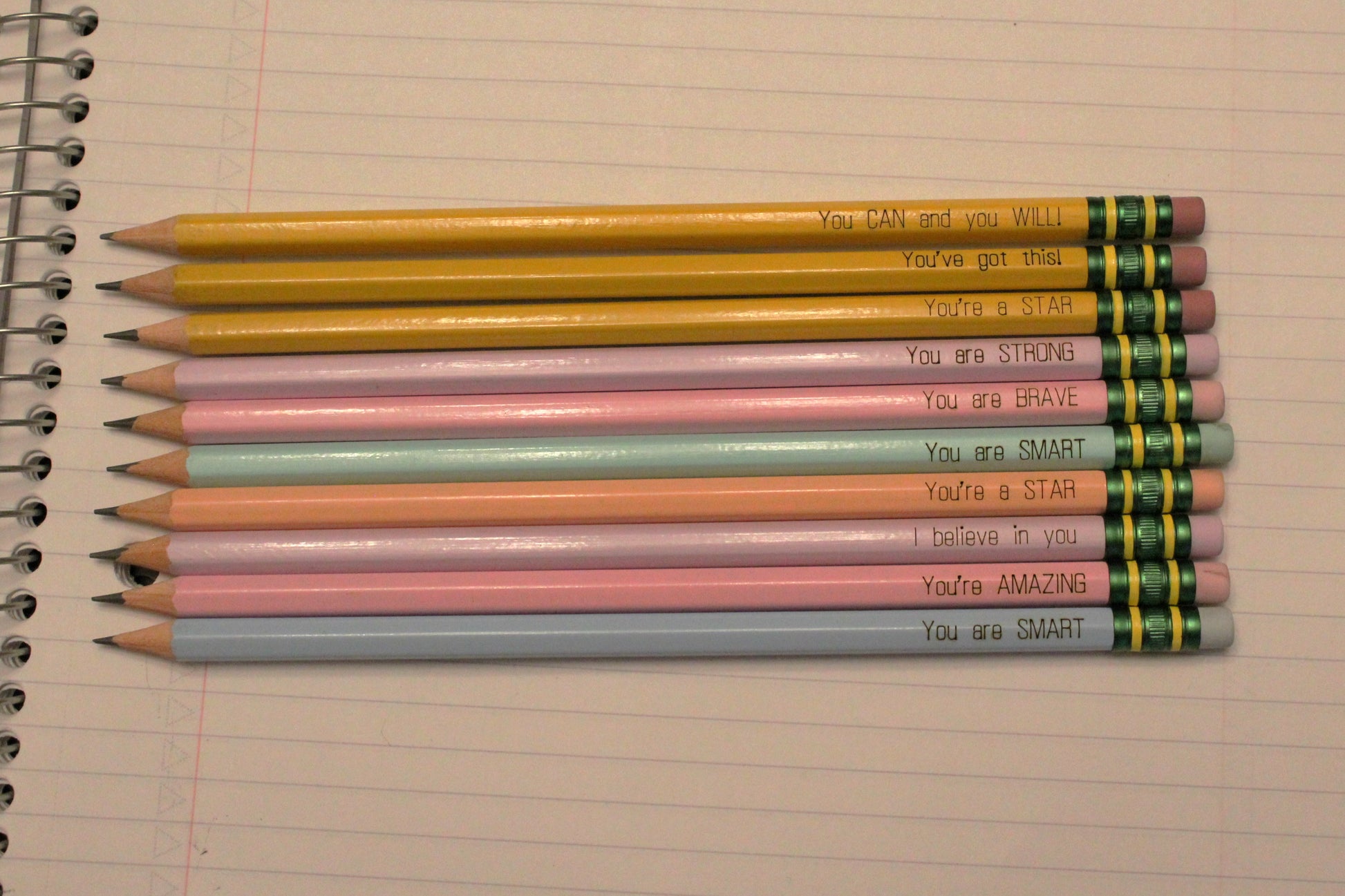 Assorted affirmation engraved pencils.