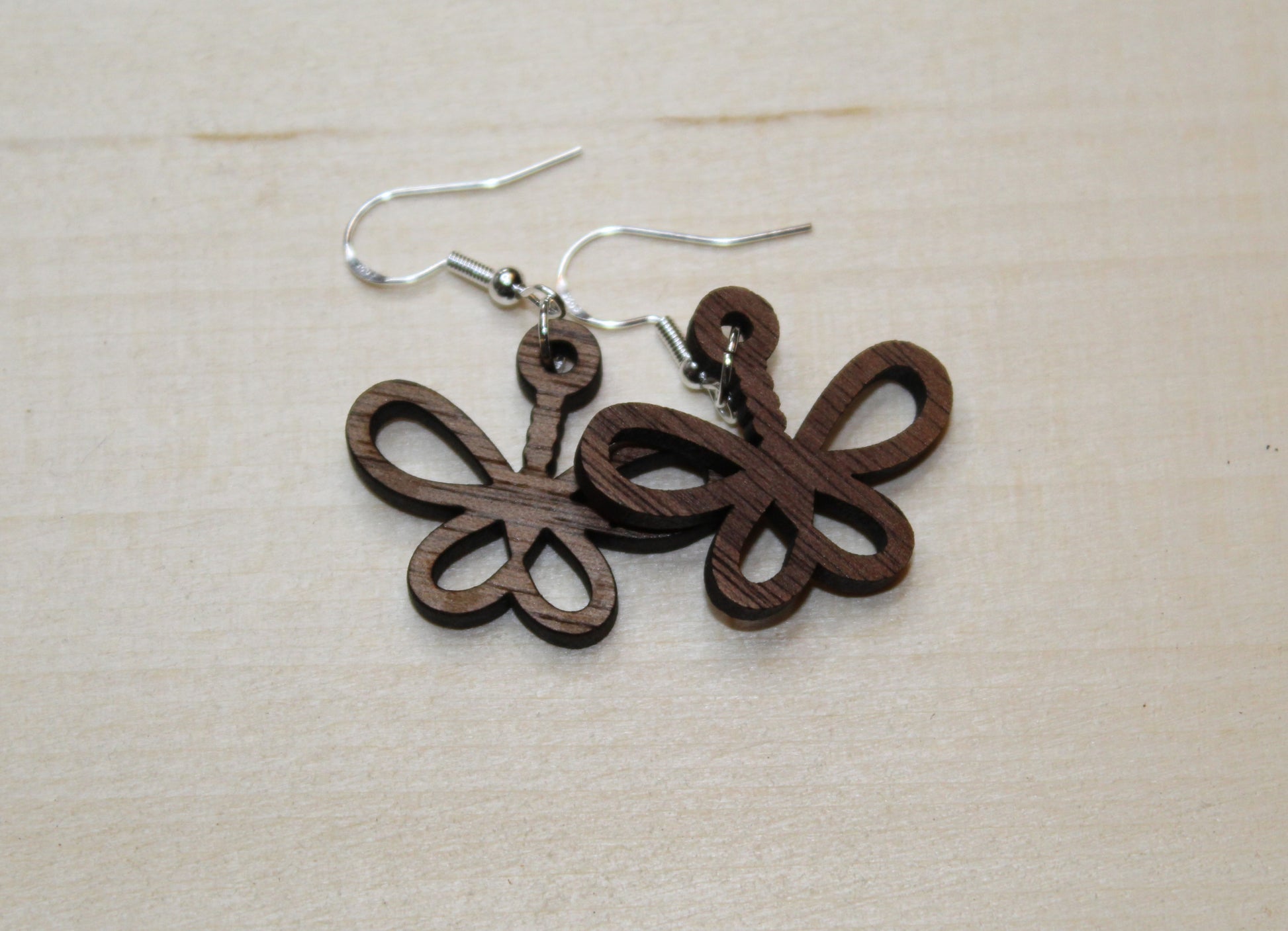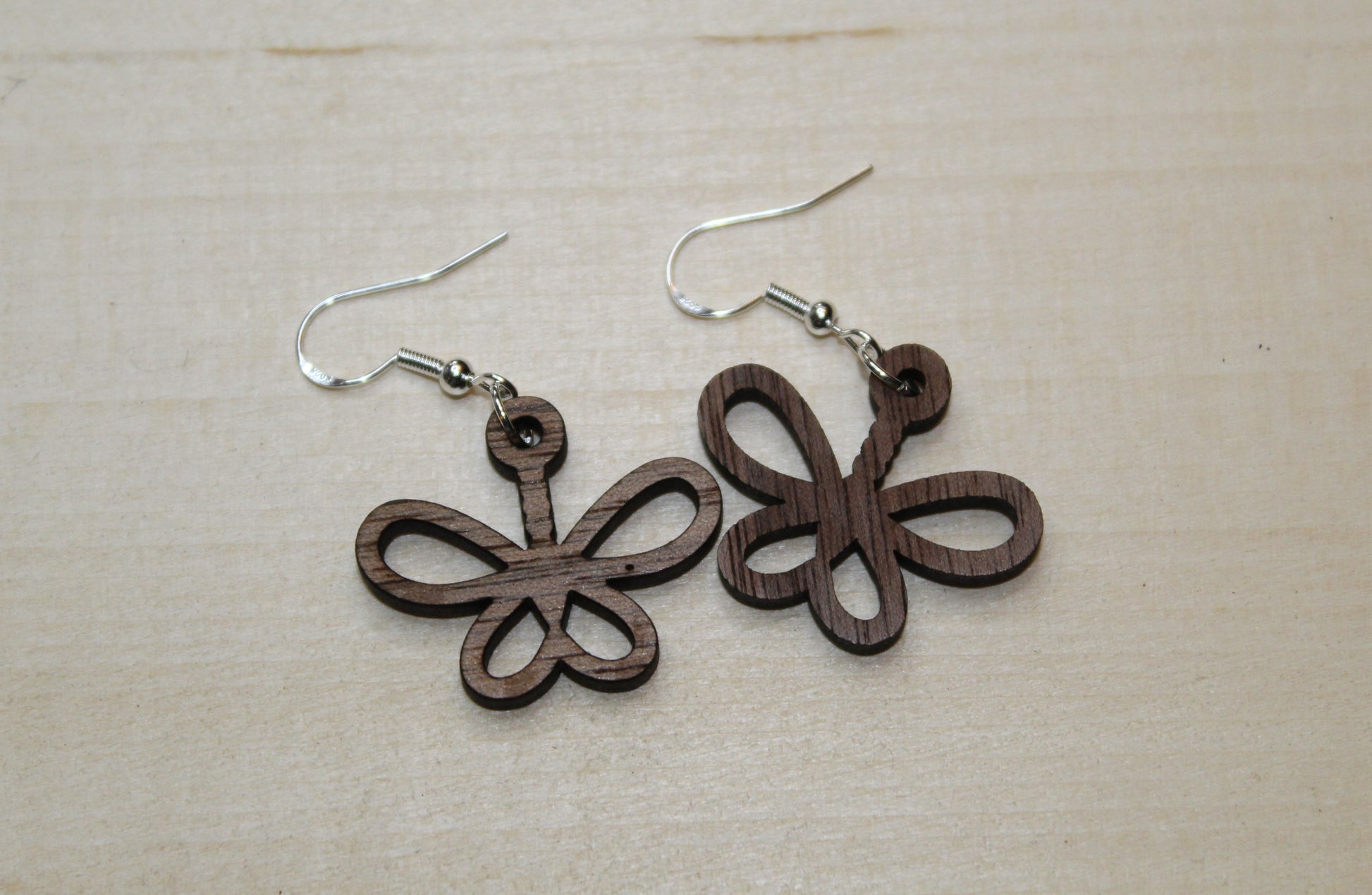 They are made from 1/8" thick walnut plywood and are sealed to resist scratching. The hooks are a sterling silver hypoallergenic earrings.