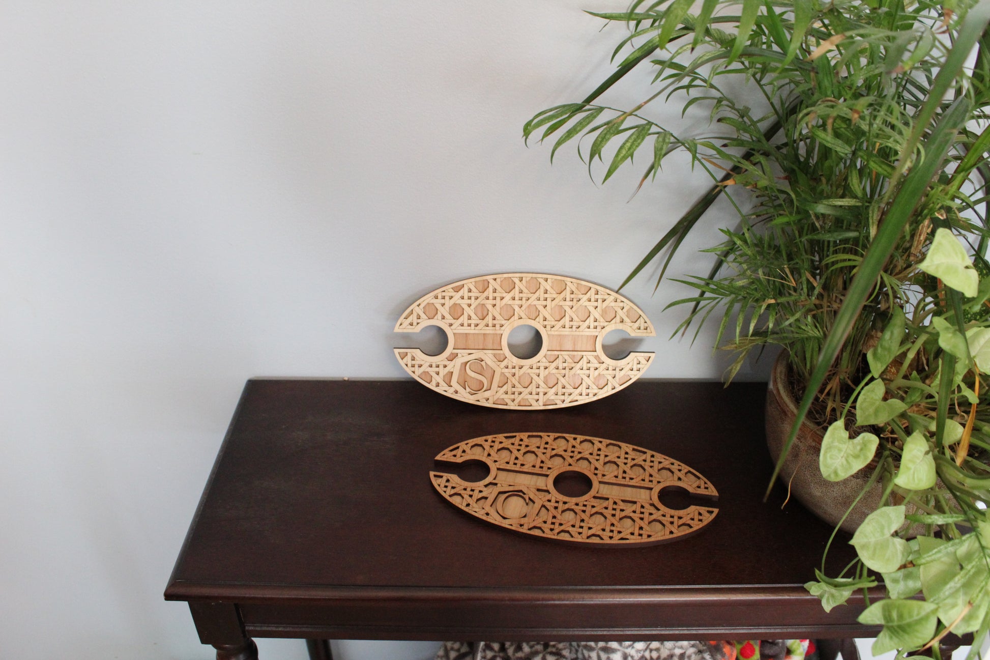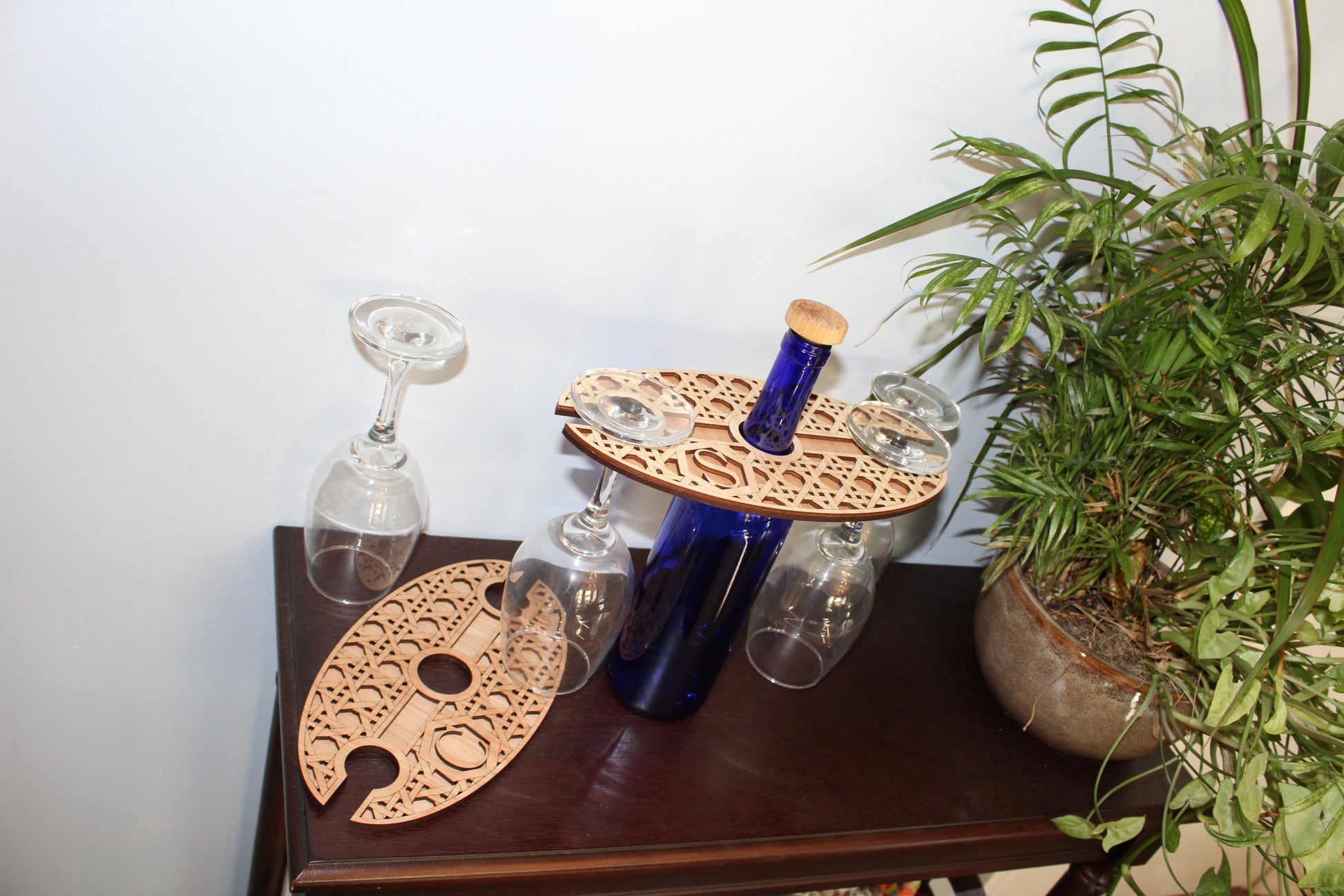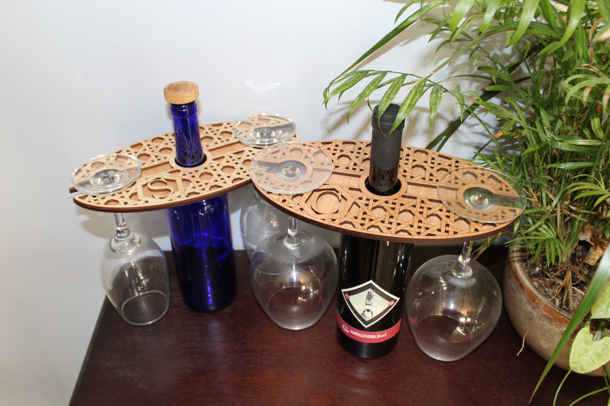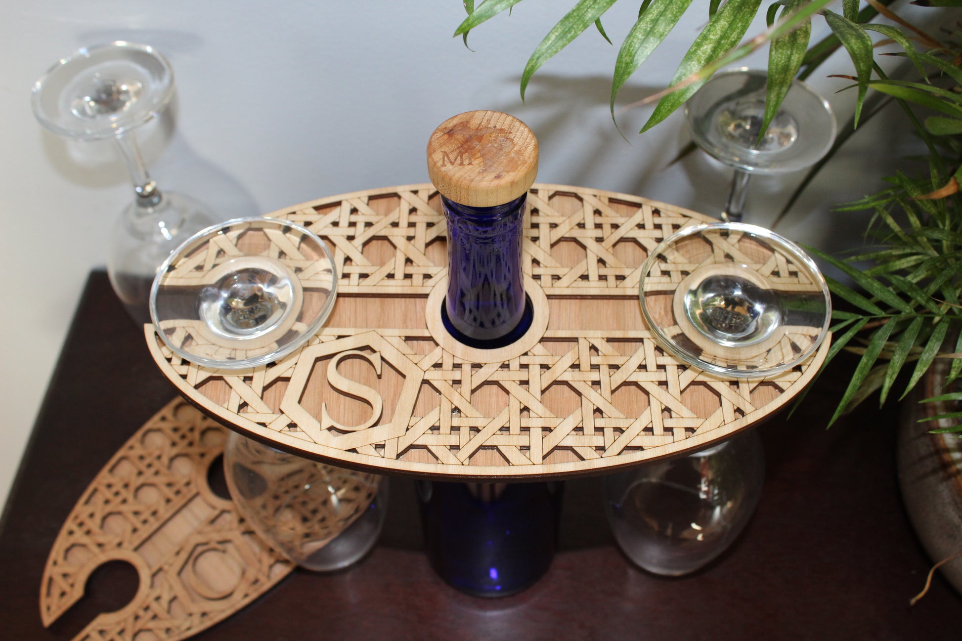 This beautiful wine server, customized with a monogram, is an elegant way to serve guests or simply display your wine and glasses in your bar area.