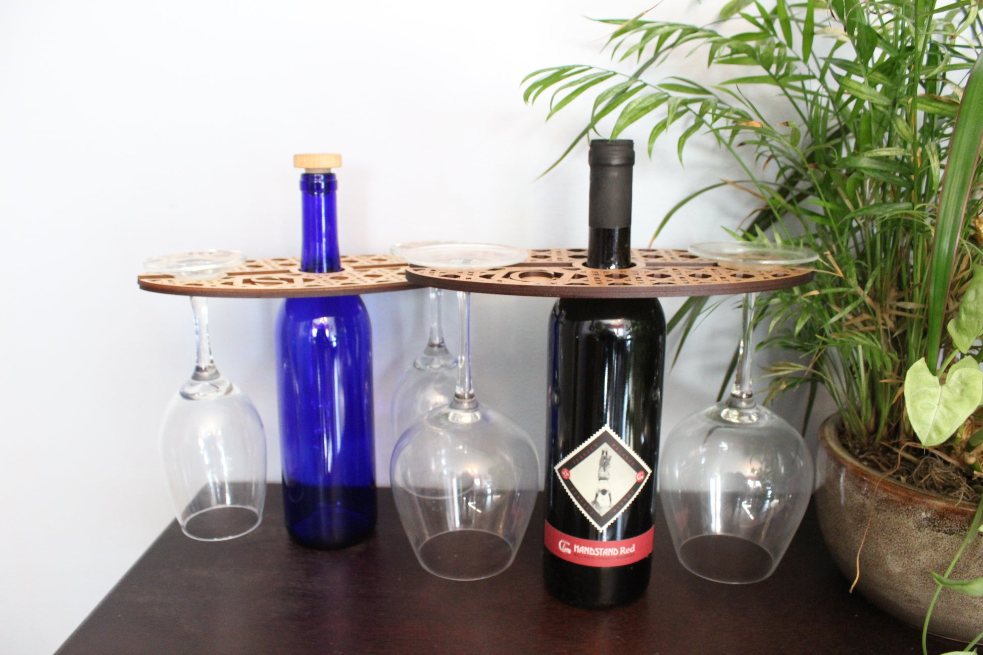 Glasses can be hung upside-down (as shone) or flipped right-side-up. Do not pour wine into glasses while it is on the holder or store on the holder with wine in the glasses.