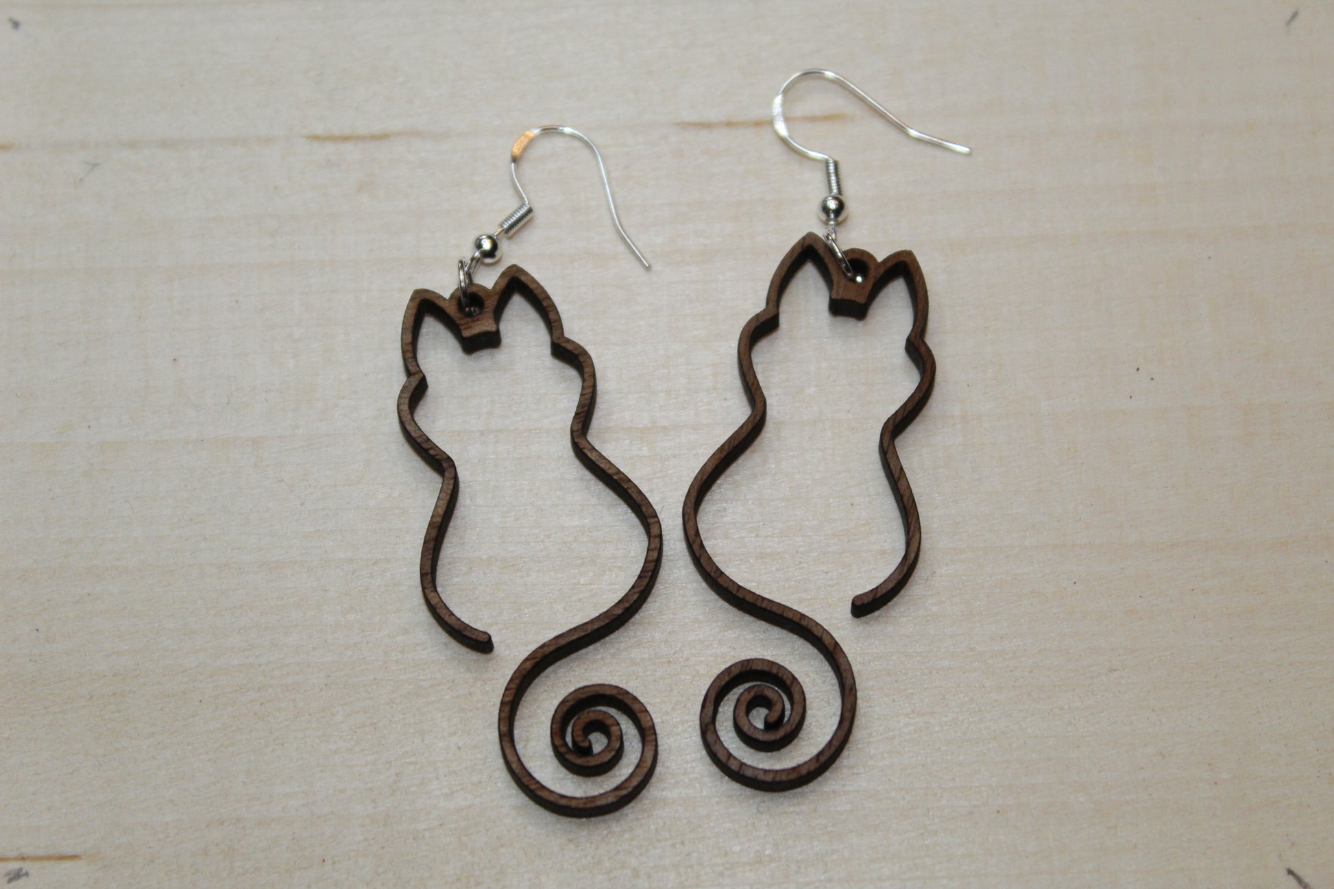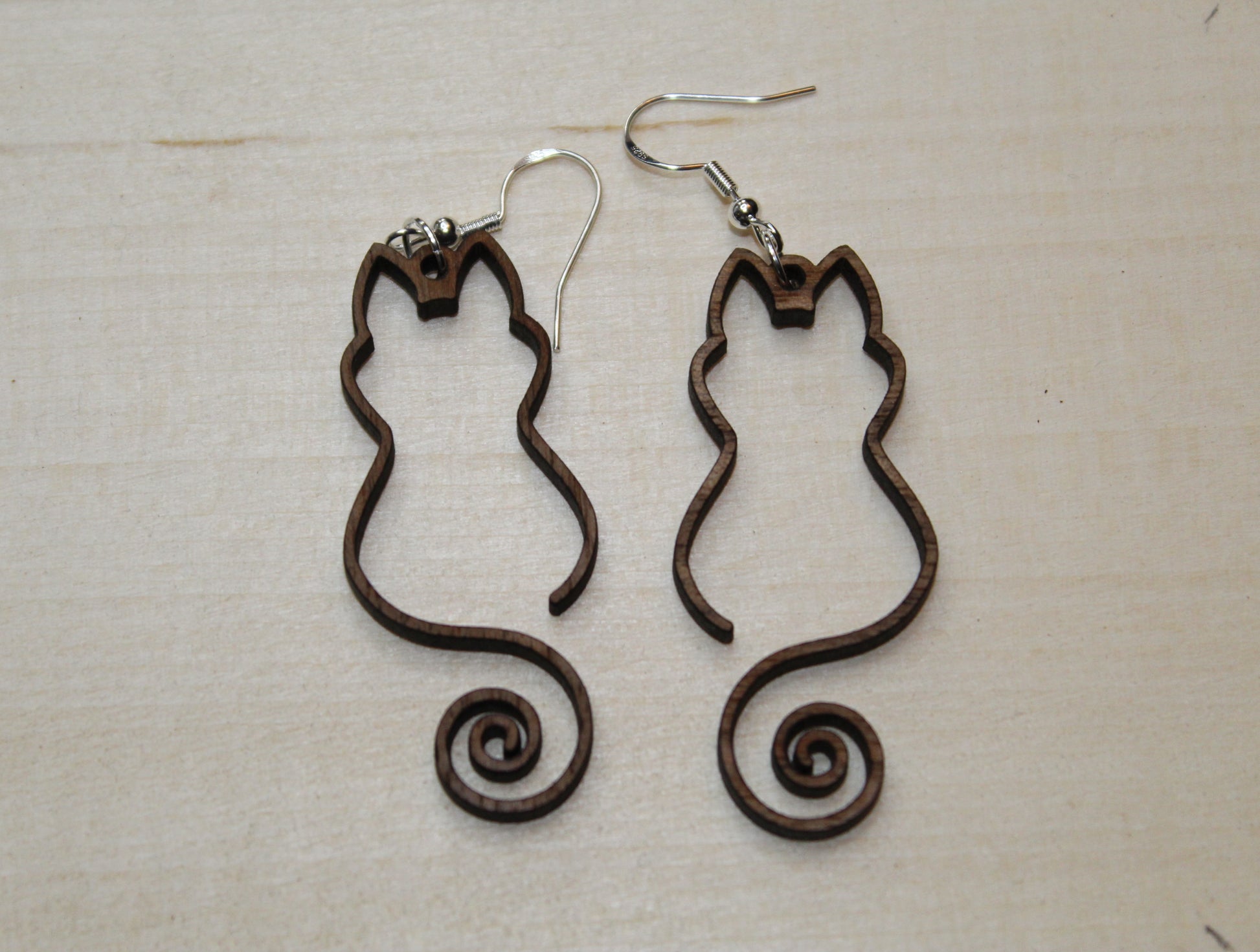 They are made from 1/8" thick walnut plywood and are sealed to resist scratching. The hooks are a sterling silver hypoallergenic earrings.