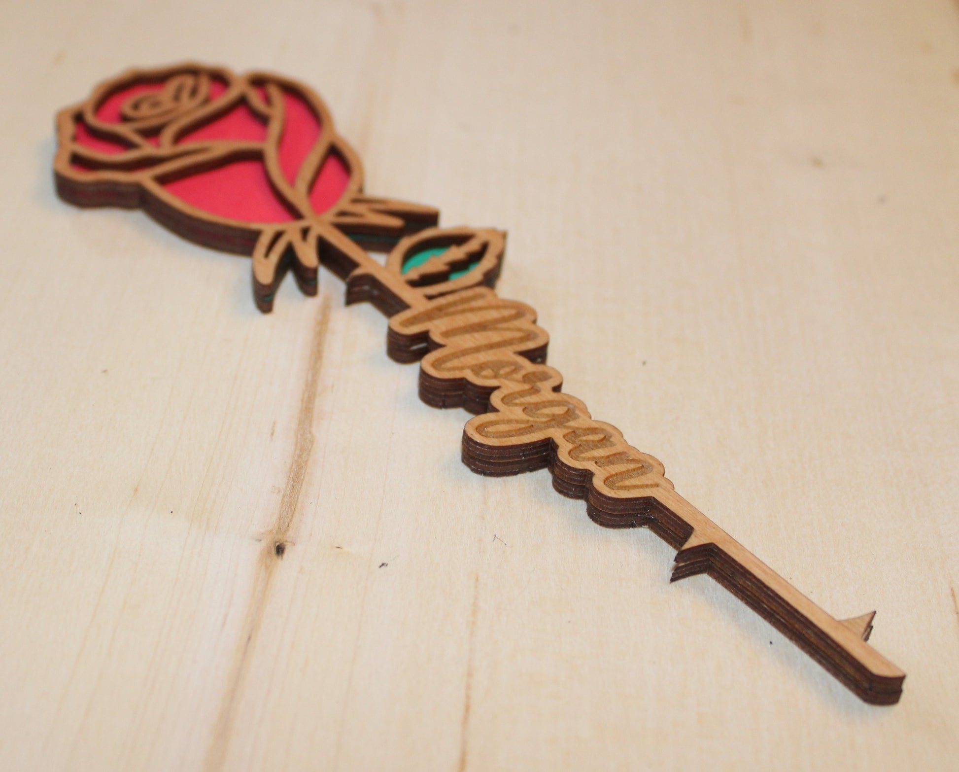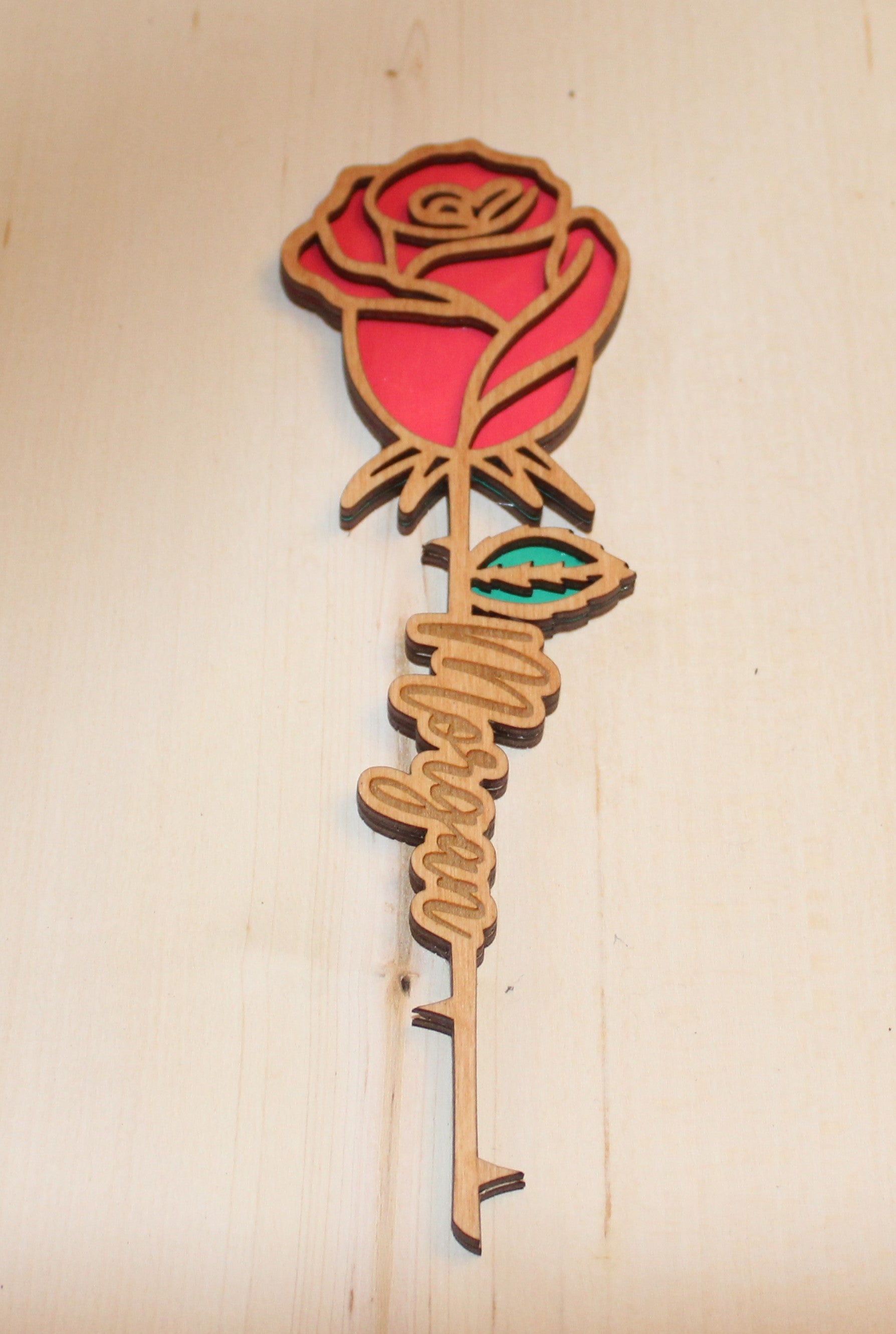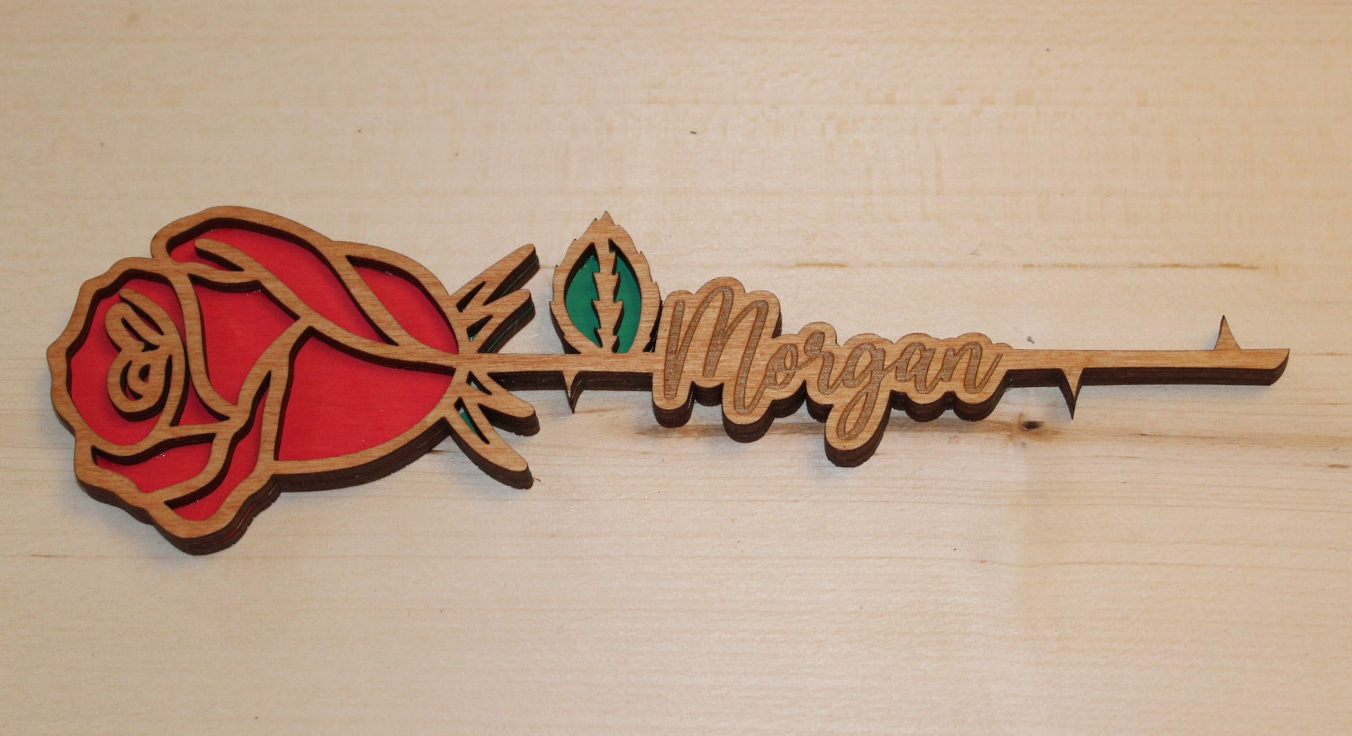 Wooden rose made from 2 layers of 1/8" thick wood.