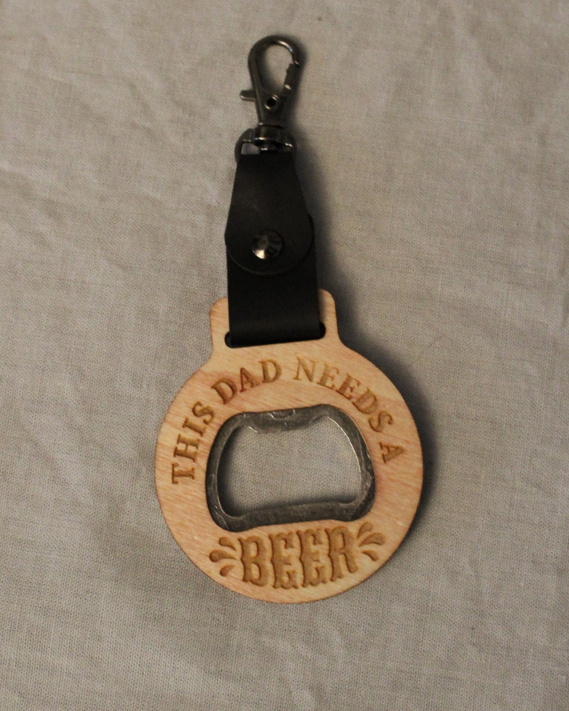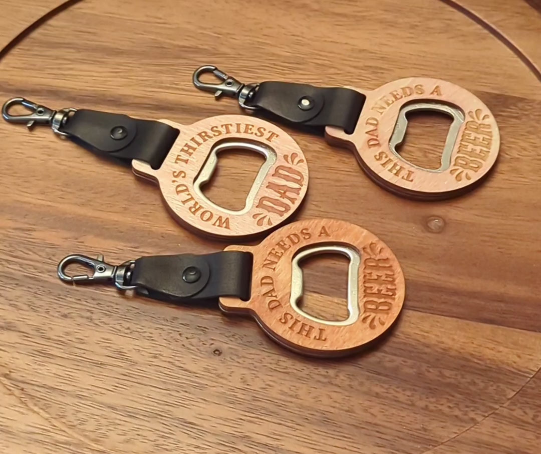 Openers are made from wood with a leather keychain strap and easy to operate snap hook keychain making it easy to take on and off your keys, bag, or any other item you want to hook it to.
