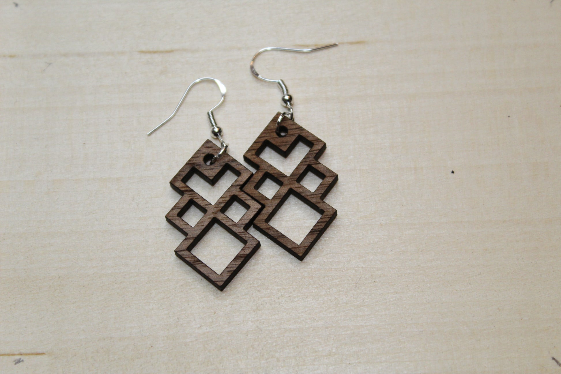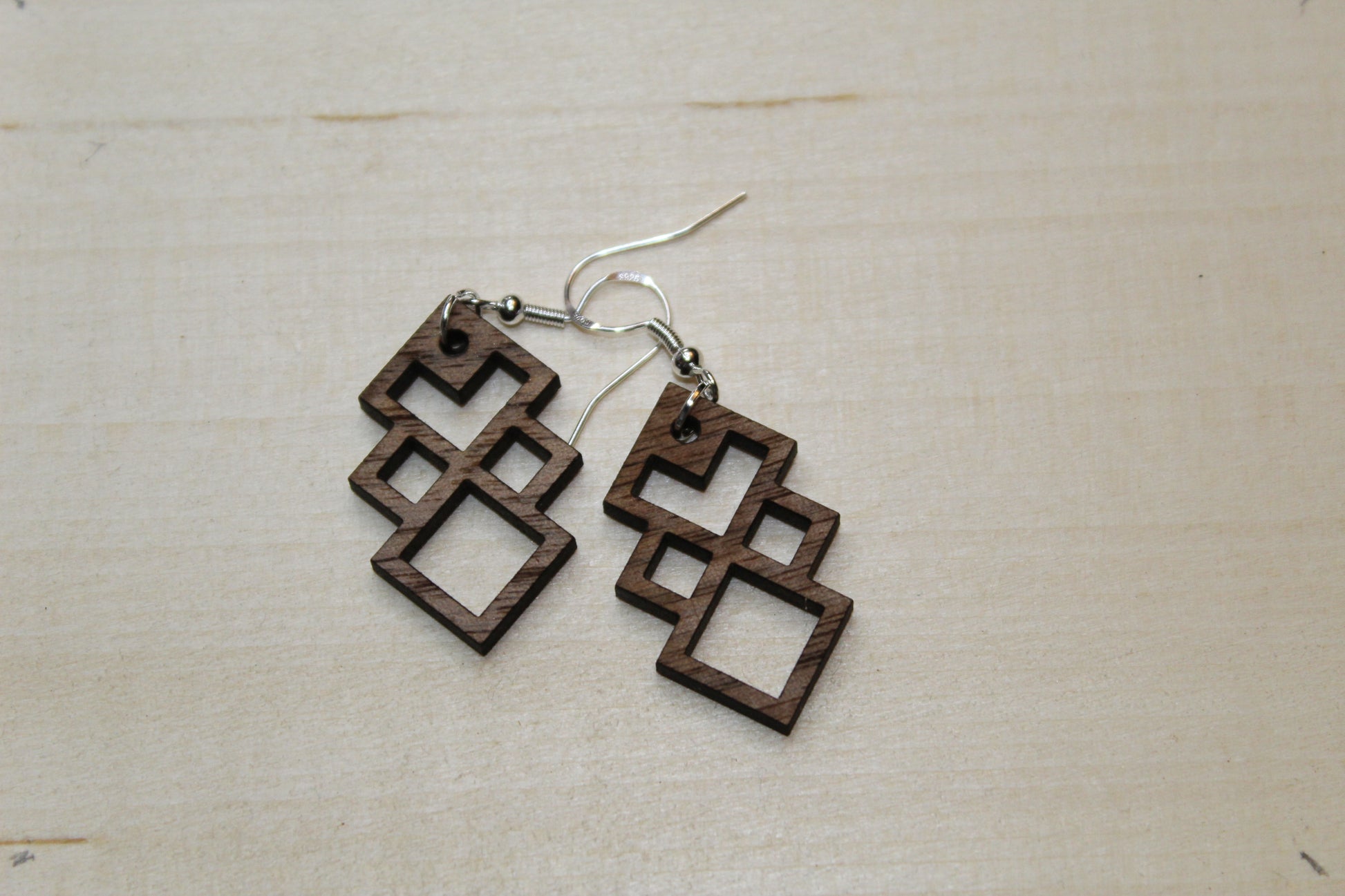 They are made from 1/8" thick walnut plywood and are sealed to resist scratching. The hooks are a sterling silver hypoallergenic earrings.