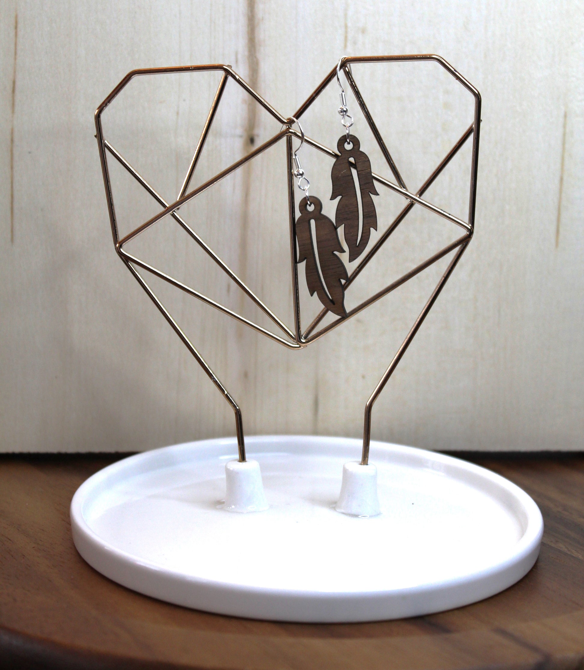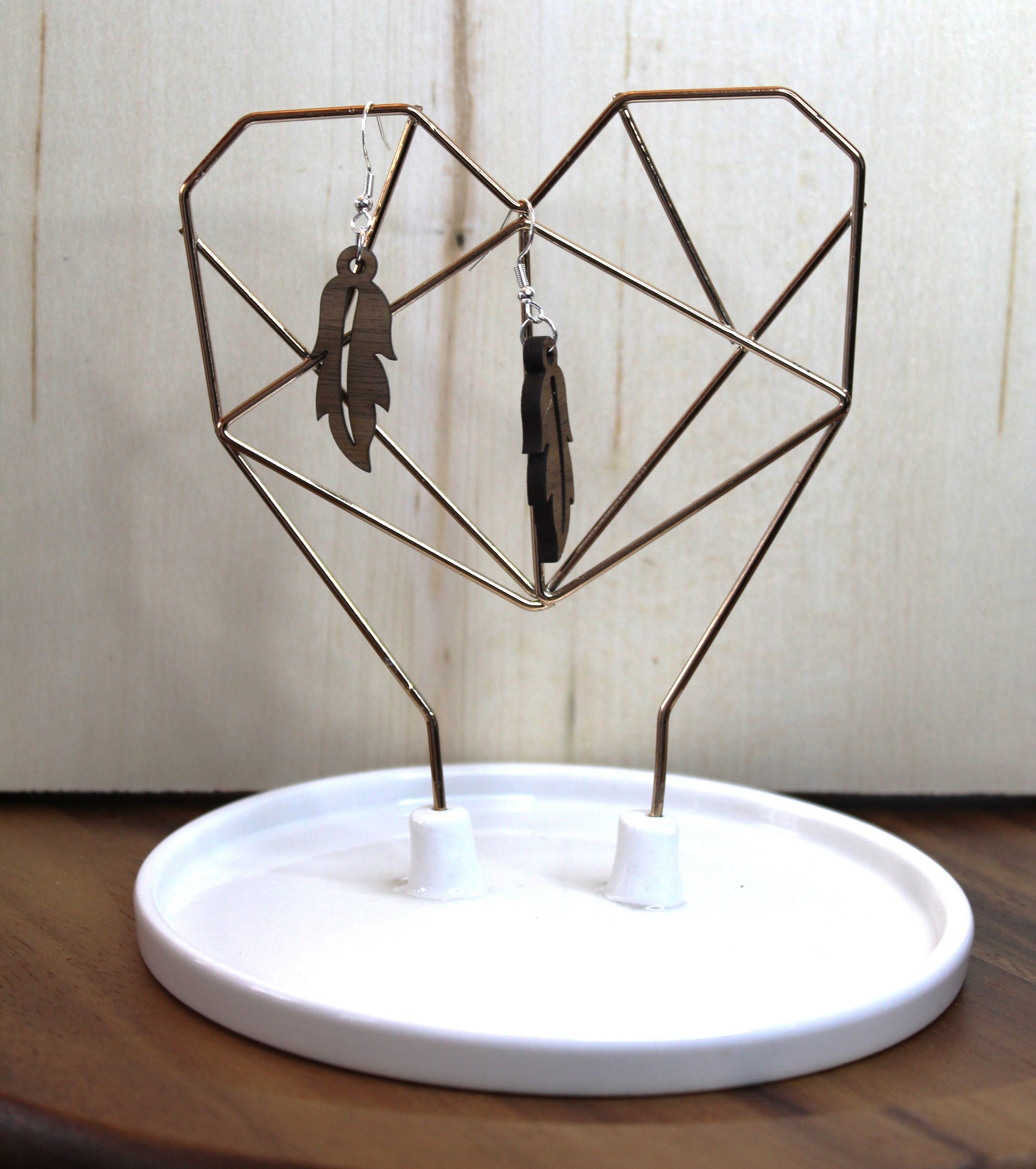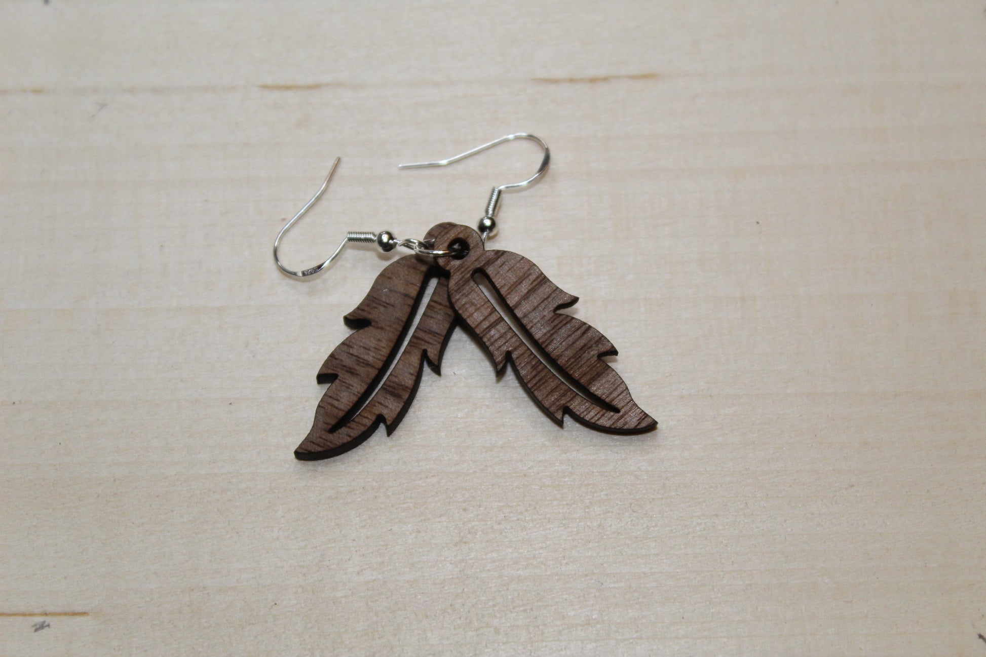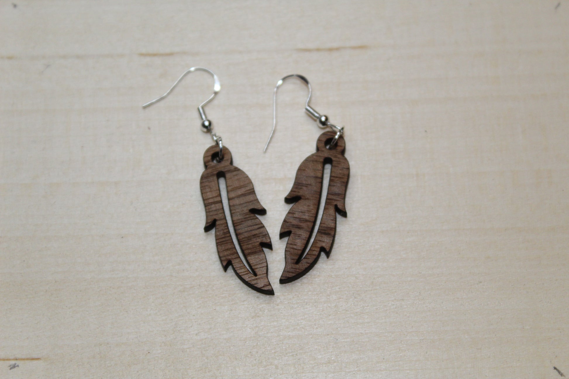 They are made from 1/8" thick walnut plywood and are sealed to resist scratching. The hooks are a sterling silver hypoallergenic earrings.