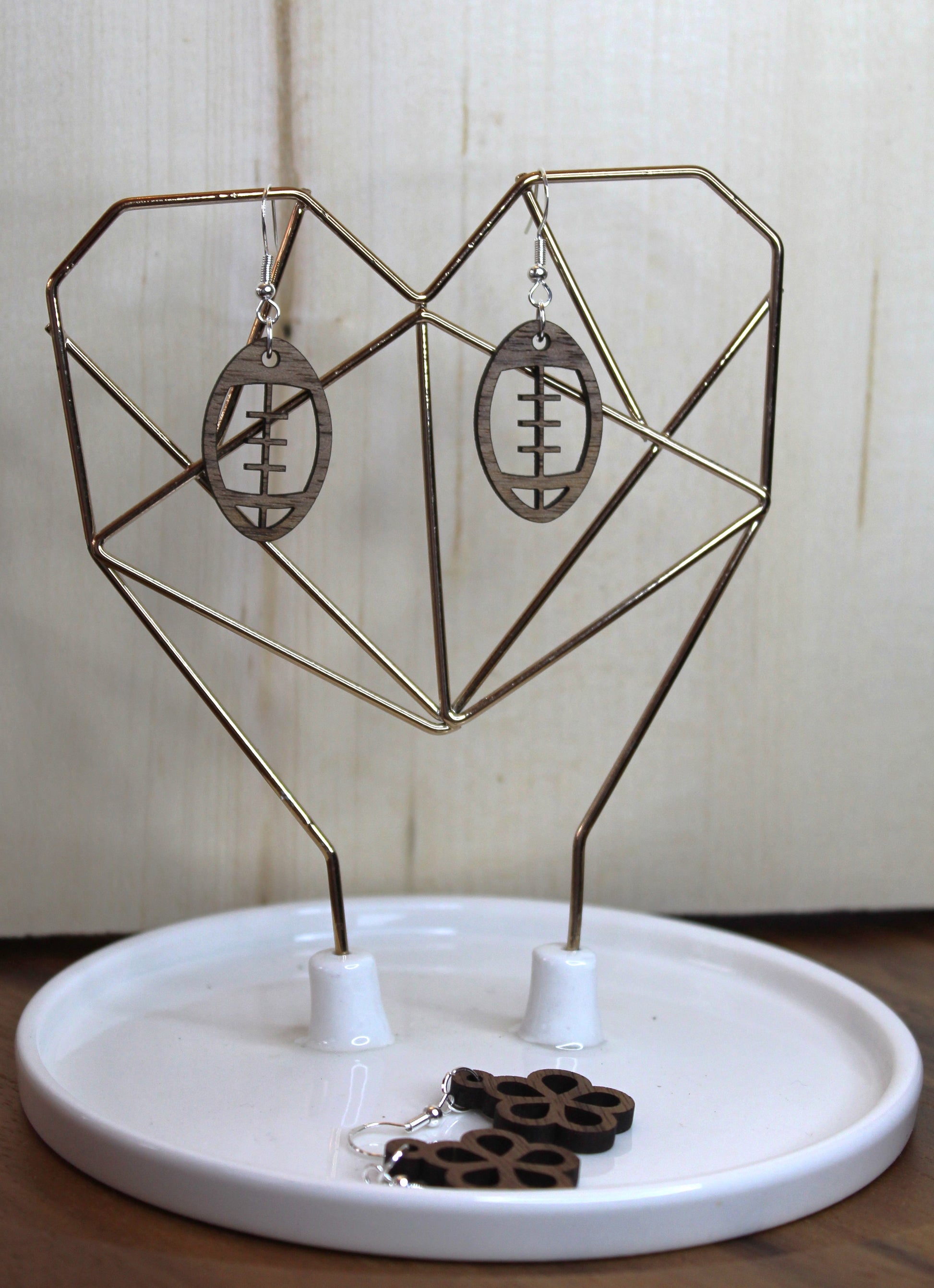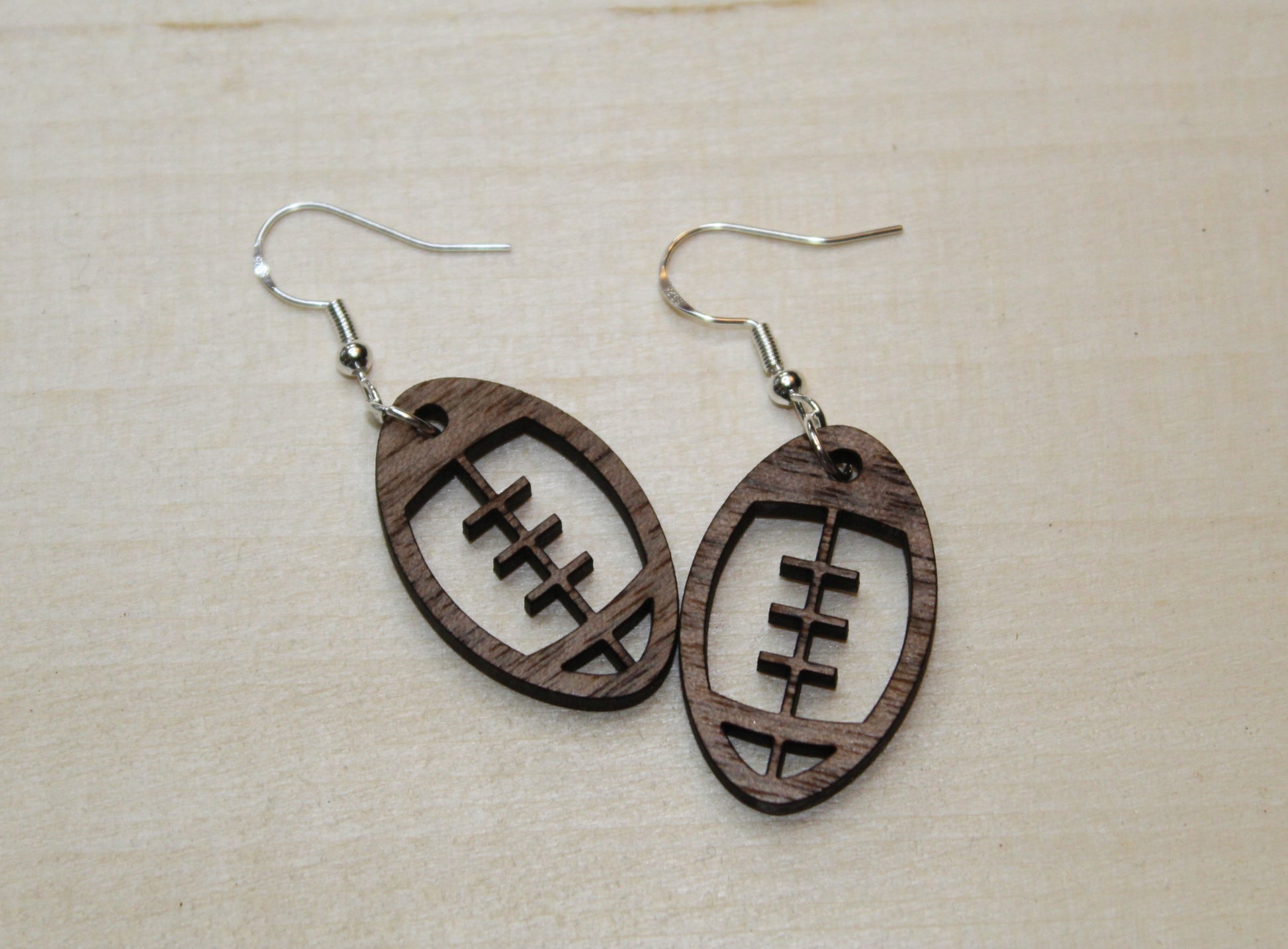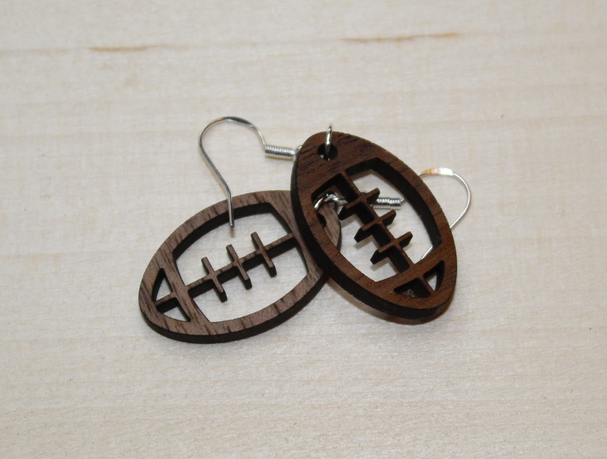 They are made from 1/8" thick walnut plywood and are sealed to resist scratching. The hooks are a sterling silver hypoallergenic earrings.