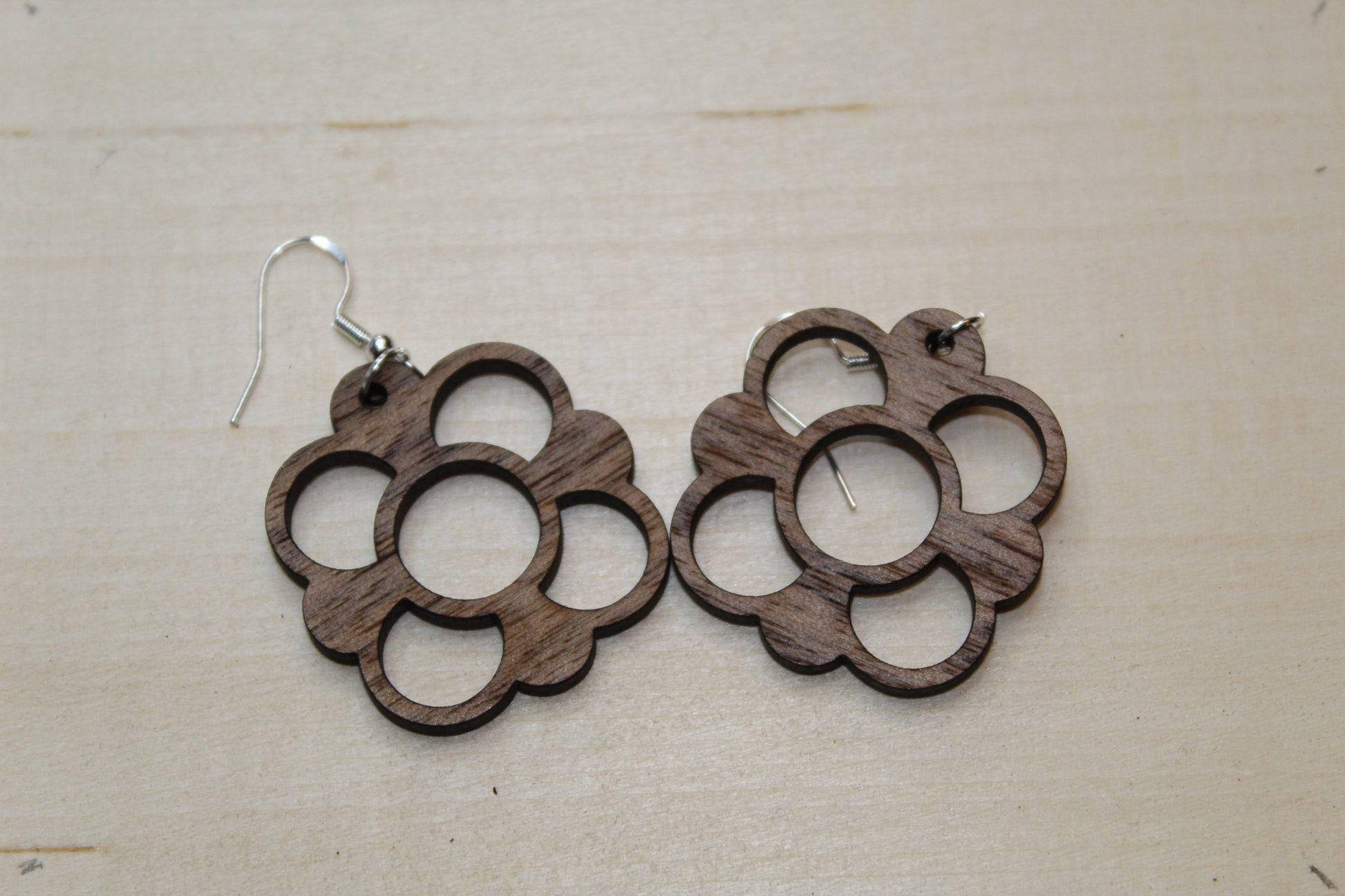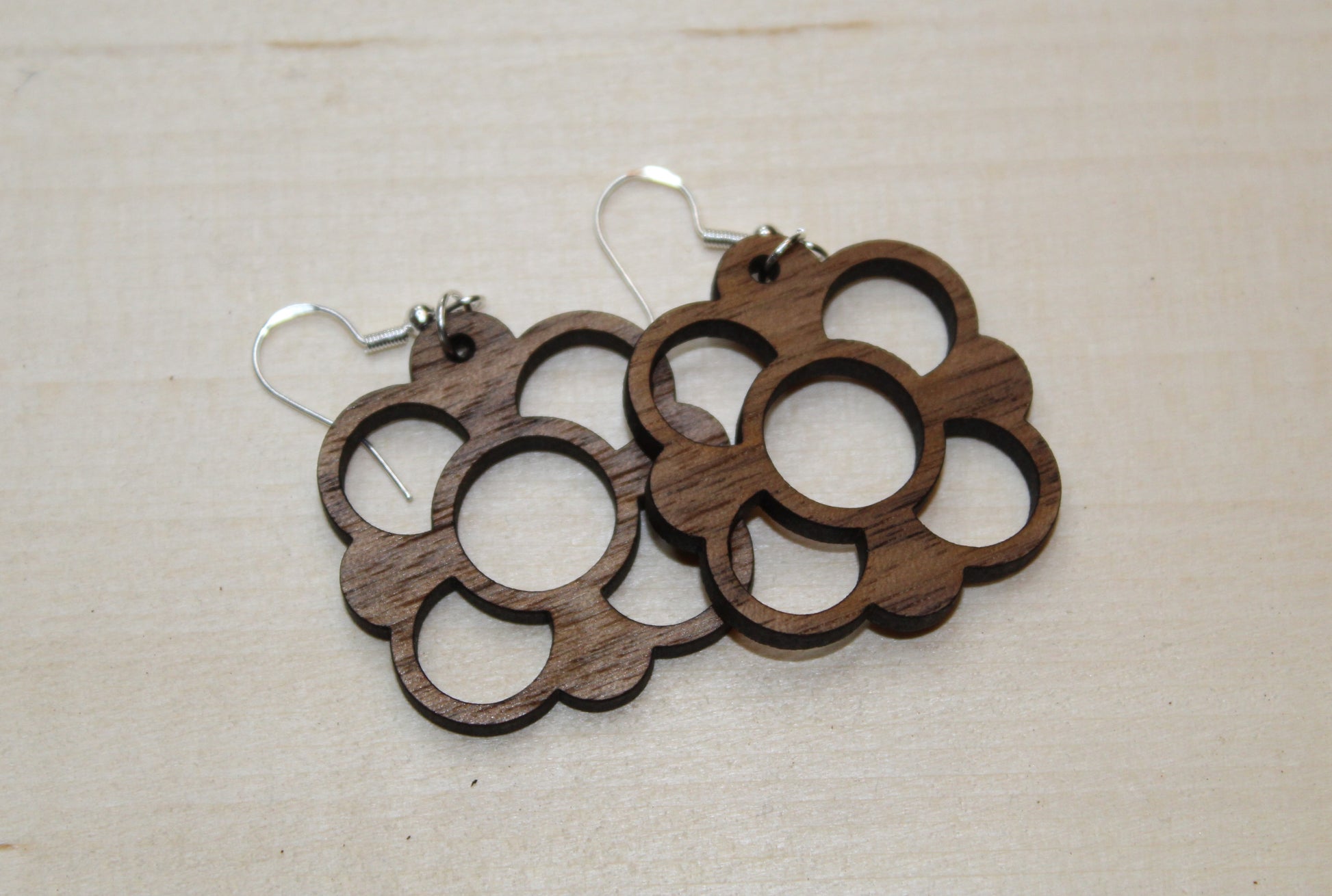 They are made from 1/8" thick walnut plywood and are sealed to resist scratching. The hooks are a sterling silver hypoallergenic earrings.