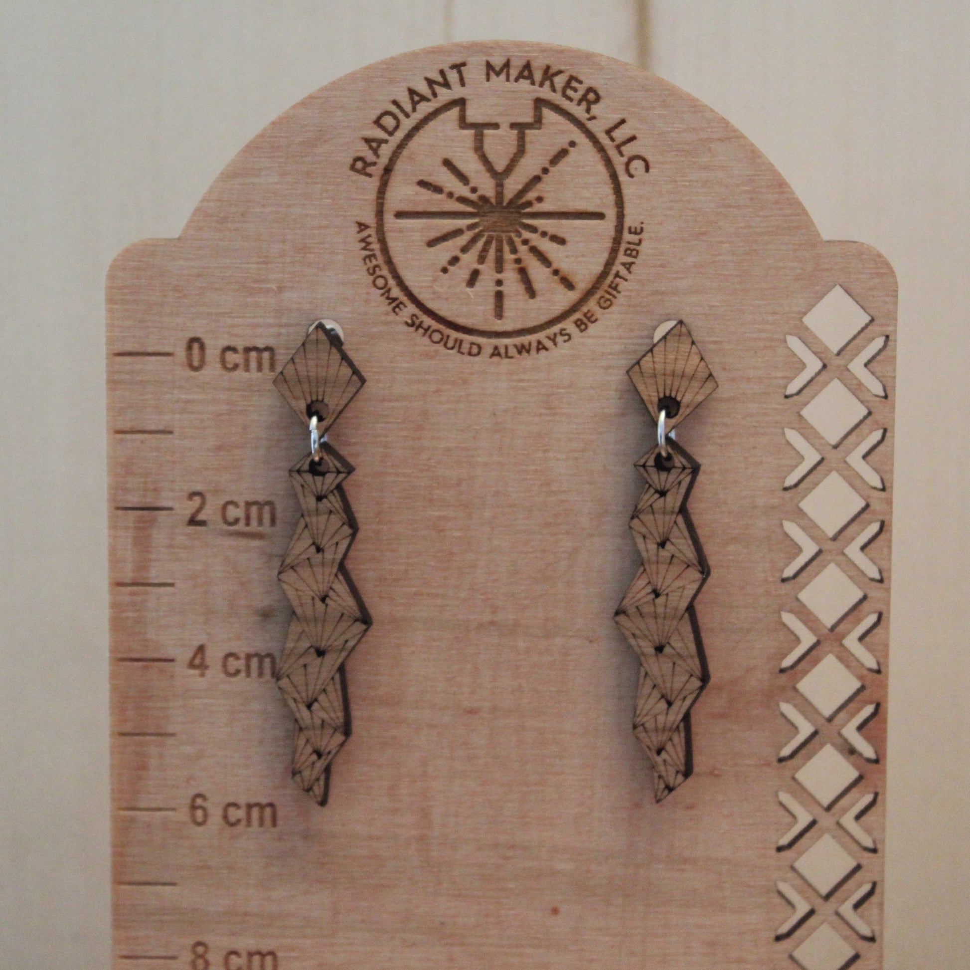 The earrings are laser engraved and cut from 1/8" thick wood and are sealed to resist scratching. The hooks are stainless steel hypoallergenic earrings and come with both a metal butterfly and rubber backing.