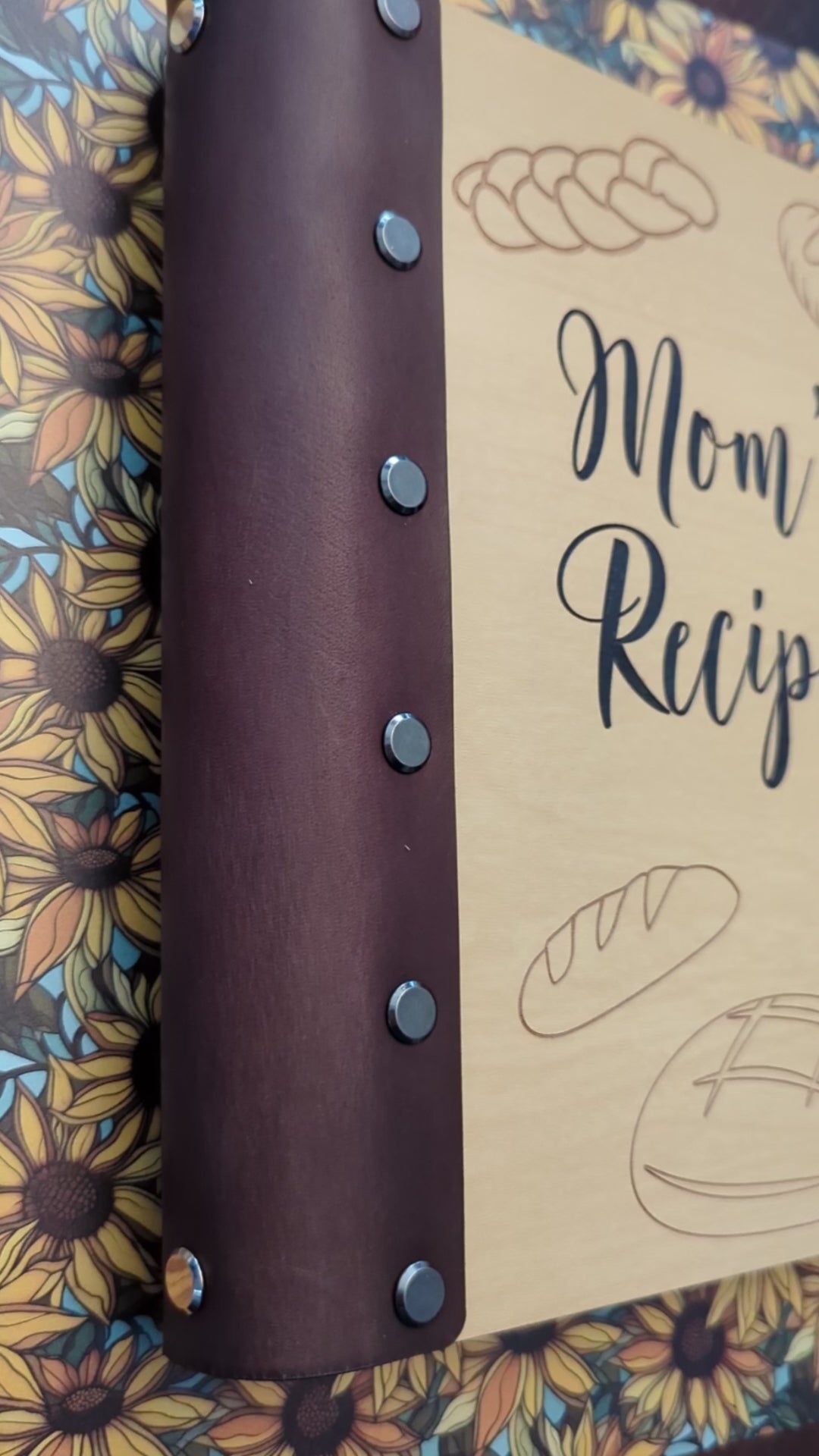Mom's Recipes Wooden Cookbook with Leather Binding- Personalization options available - Half Legal A5 size book for 4x6 recipe cards