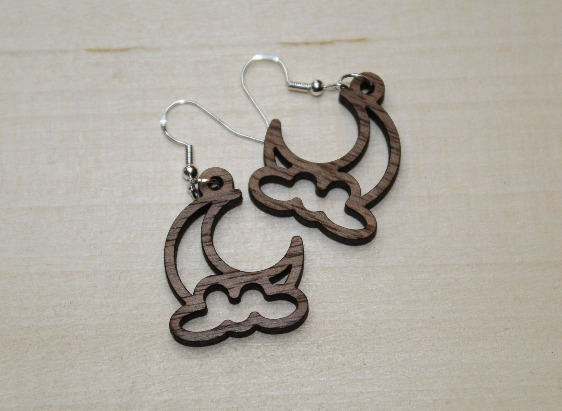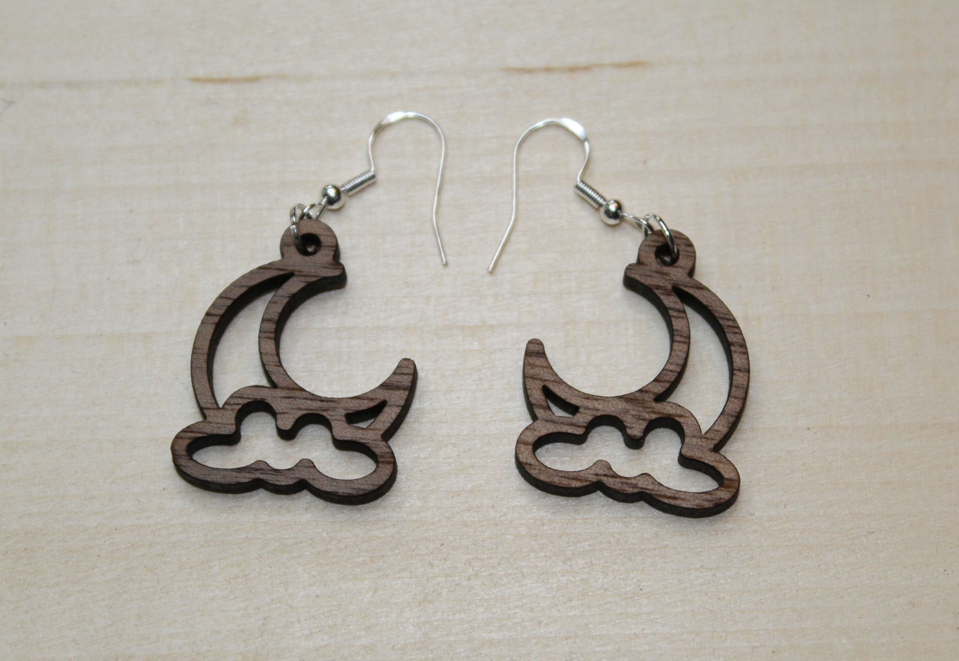 They are made from 1/8" thick walnut plywood and are sealed to resist scratching. The hooks are a sterling silver hypoallergenic earrings.