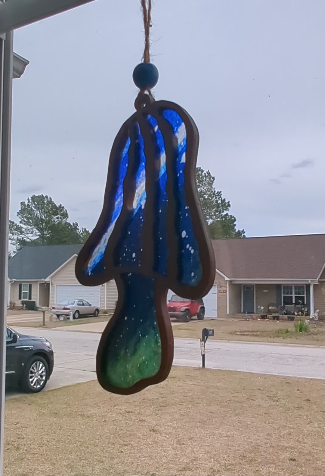 Wood pattern/color and "stained glass" colors may vary from piece to piece, making each and every suncatcher unique in its own way.