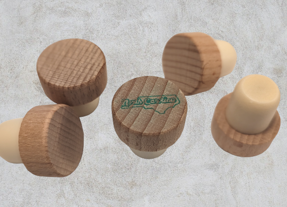 Wooden topped rubber wine stopper.