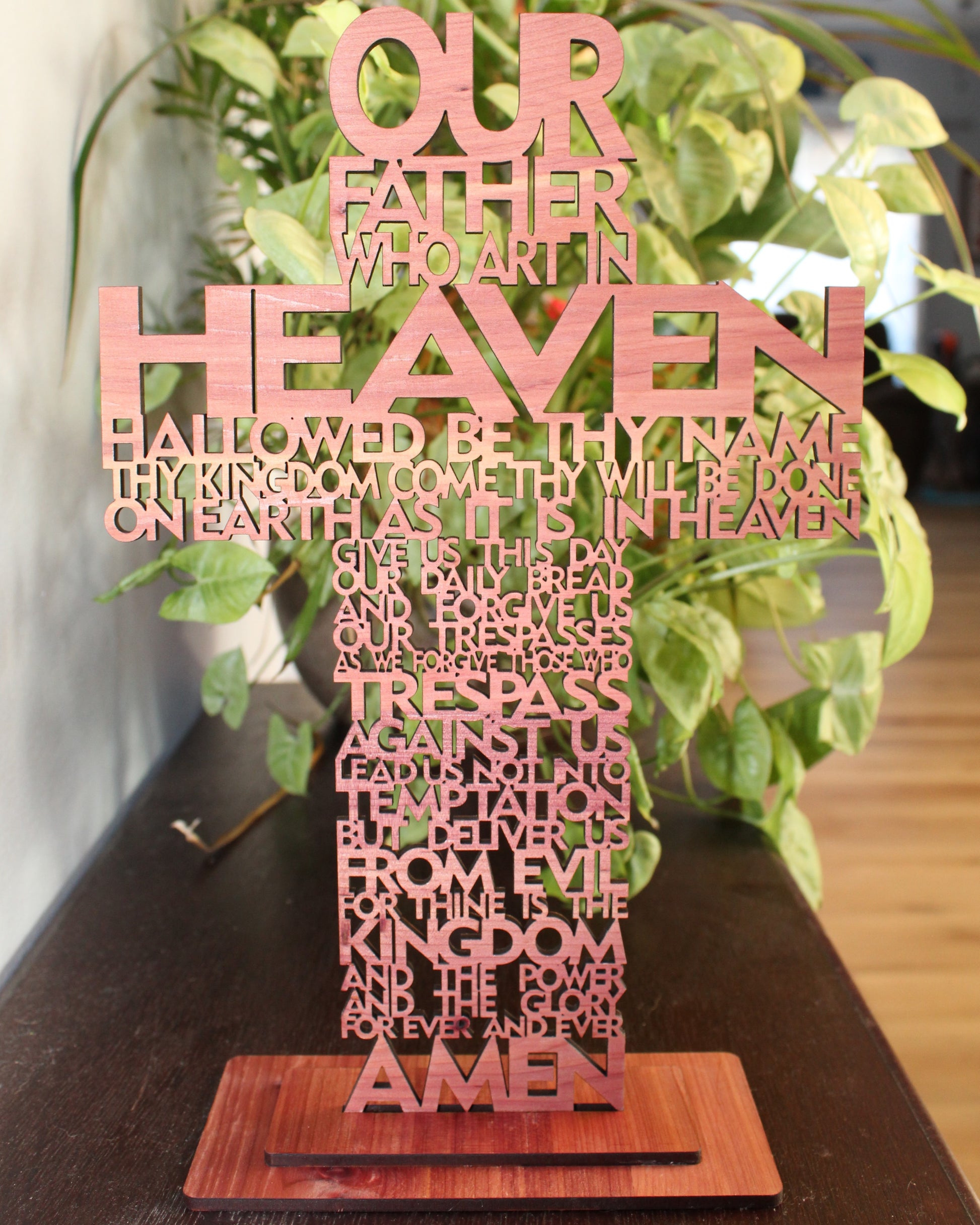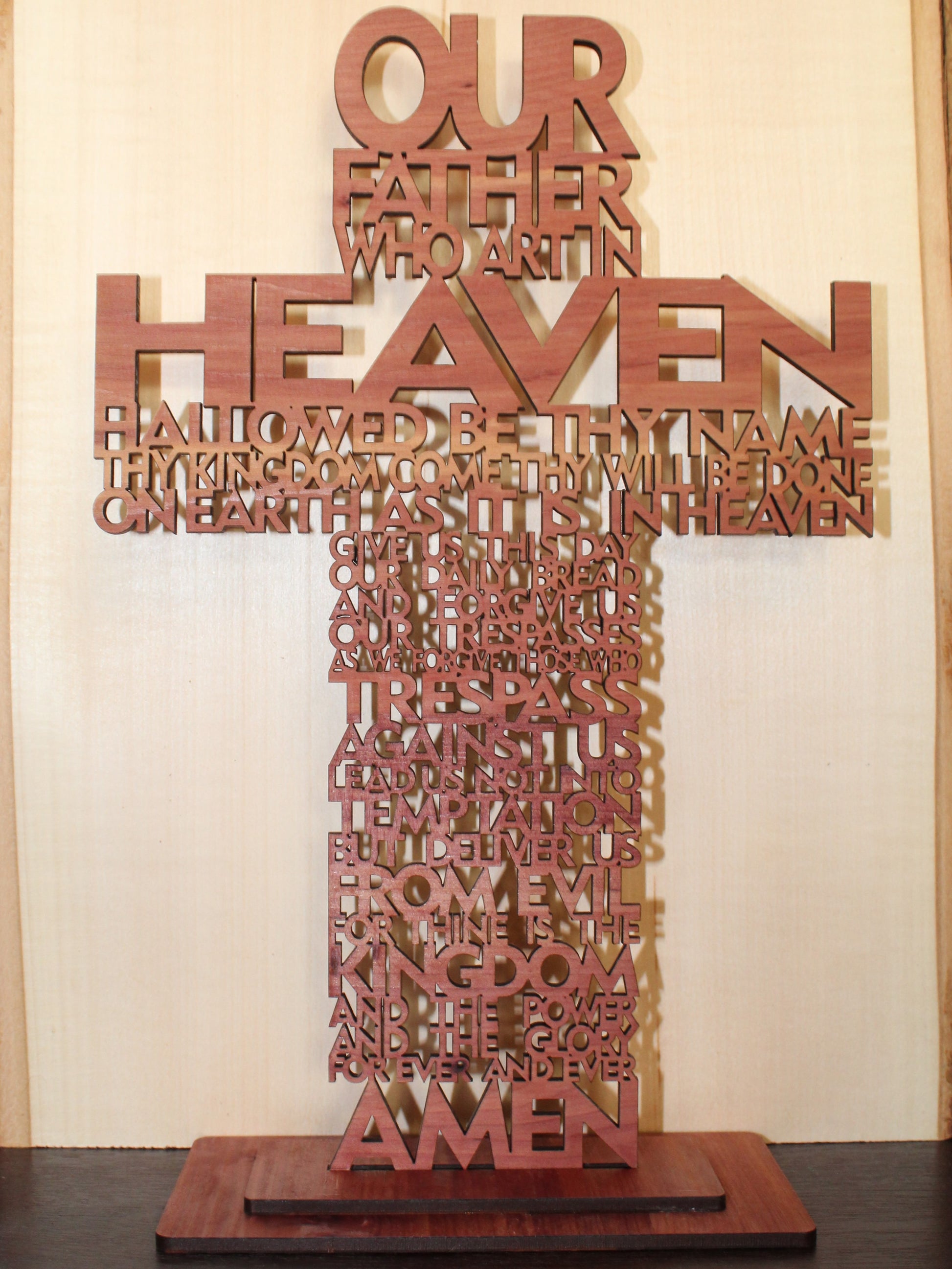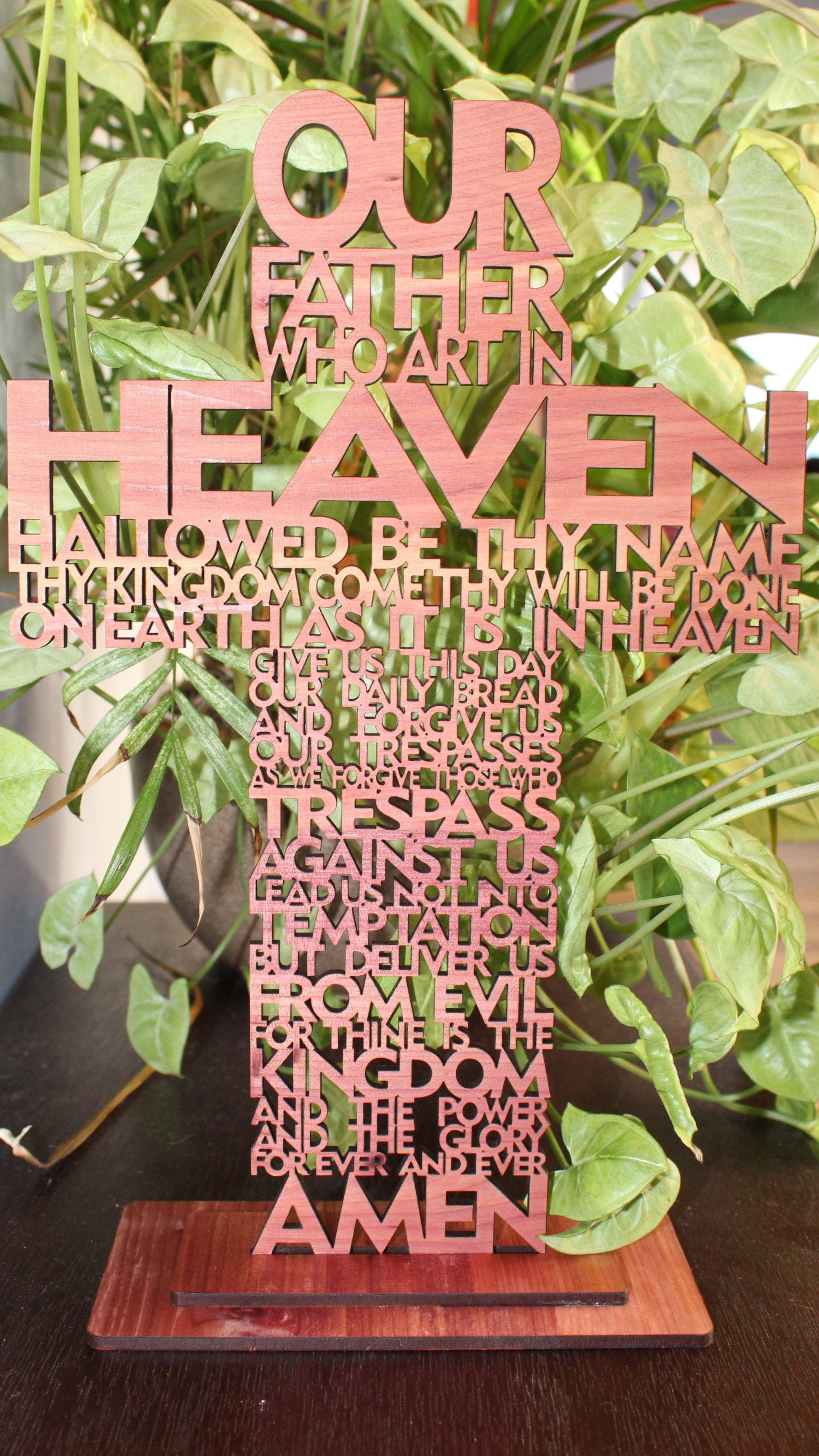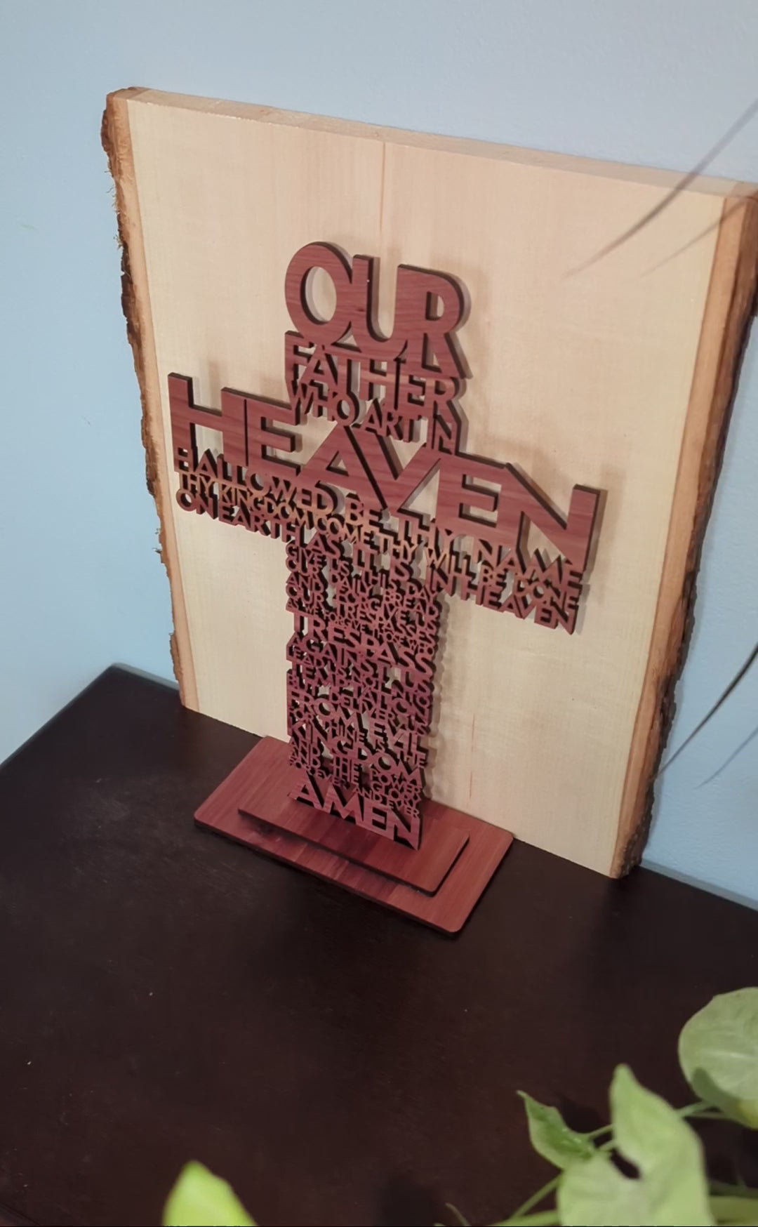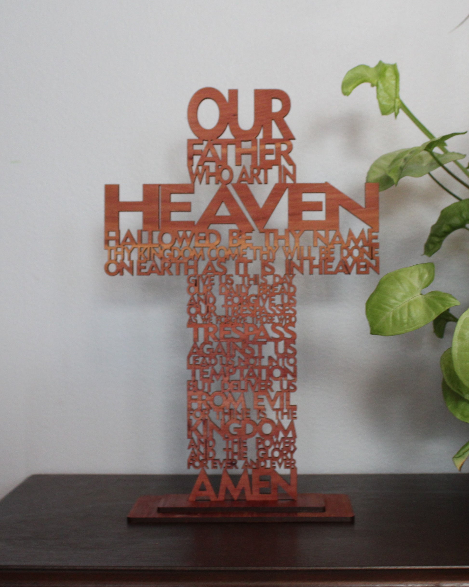 Our Father Cross Wooden Decor with Base Stand Lord's Prayer