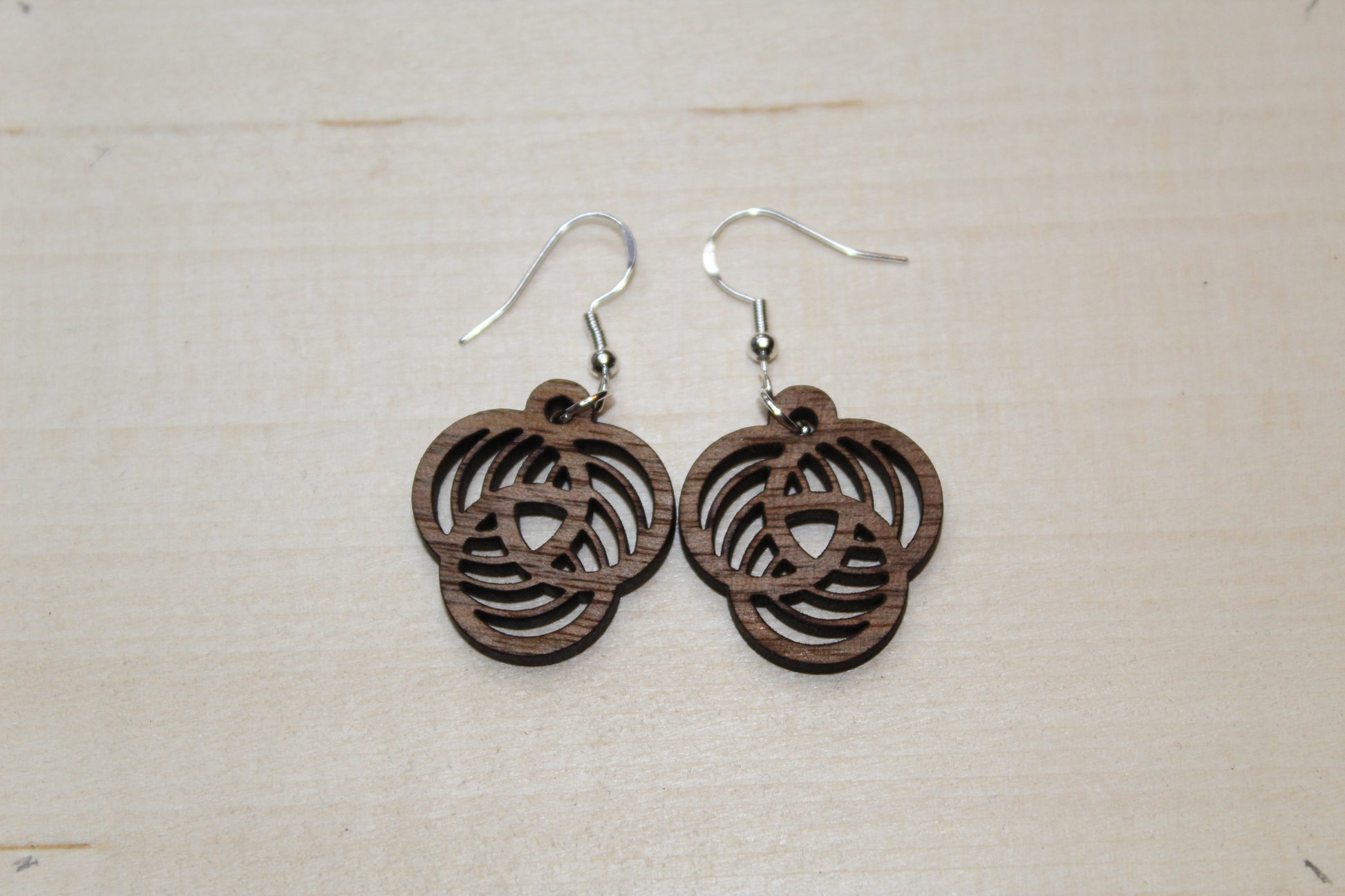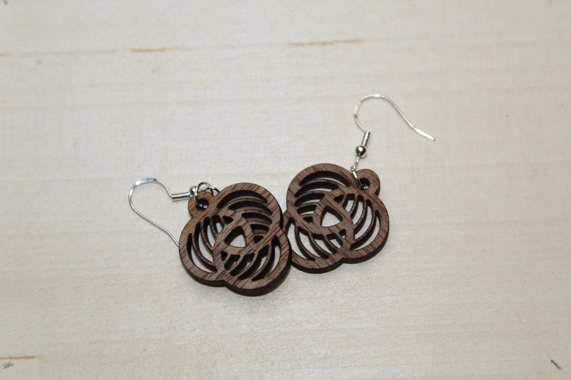 They are made from 1/8" thick walnut plywood and are sealed to resist scratching. The hooks are a sterling silver hypoallergenic earrings.