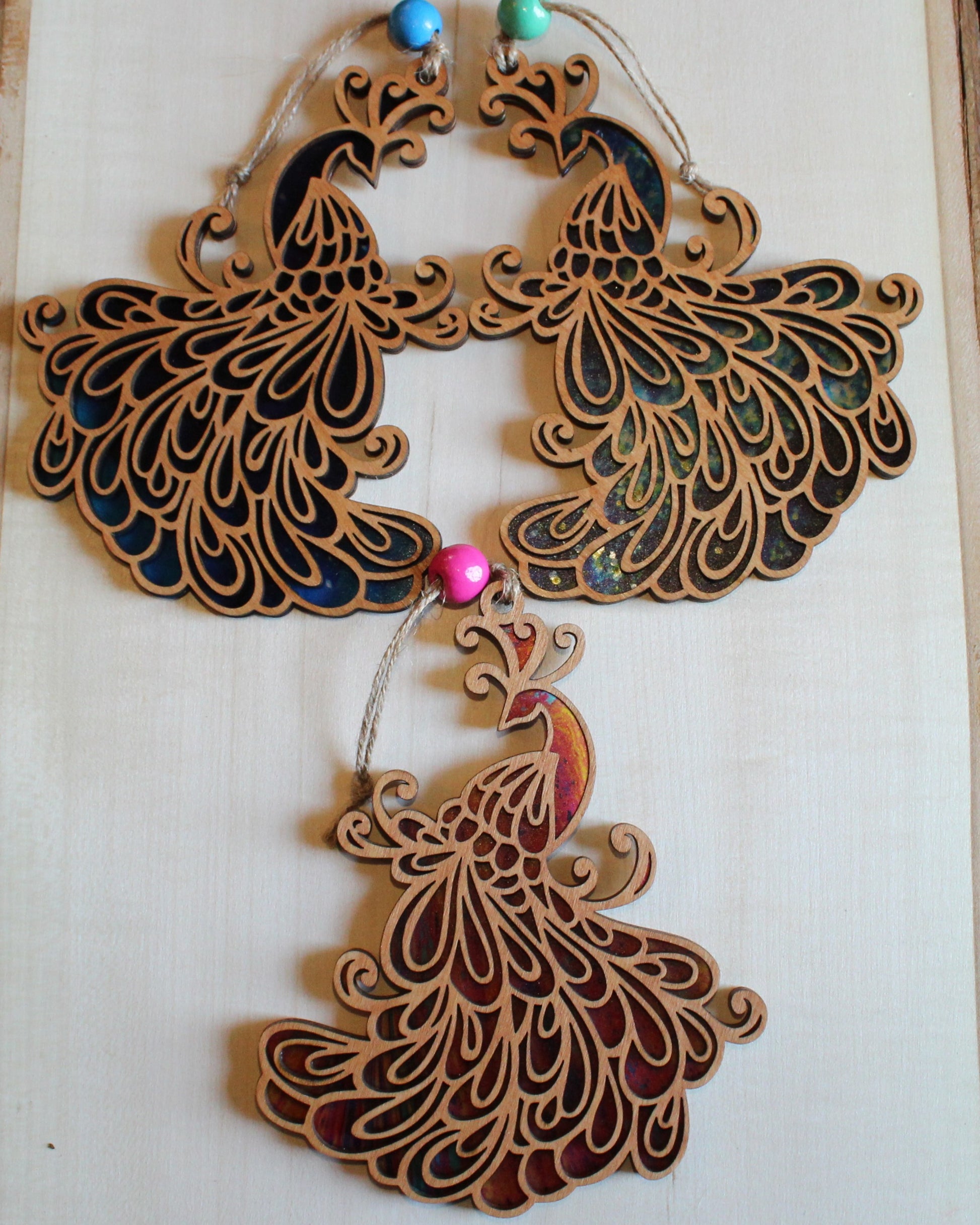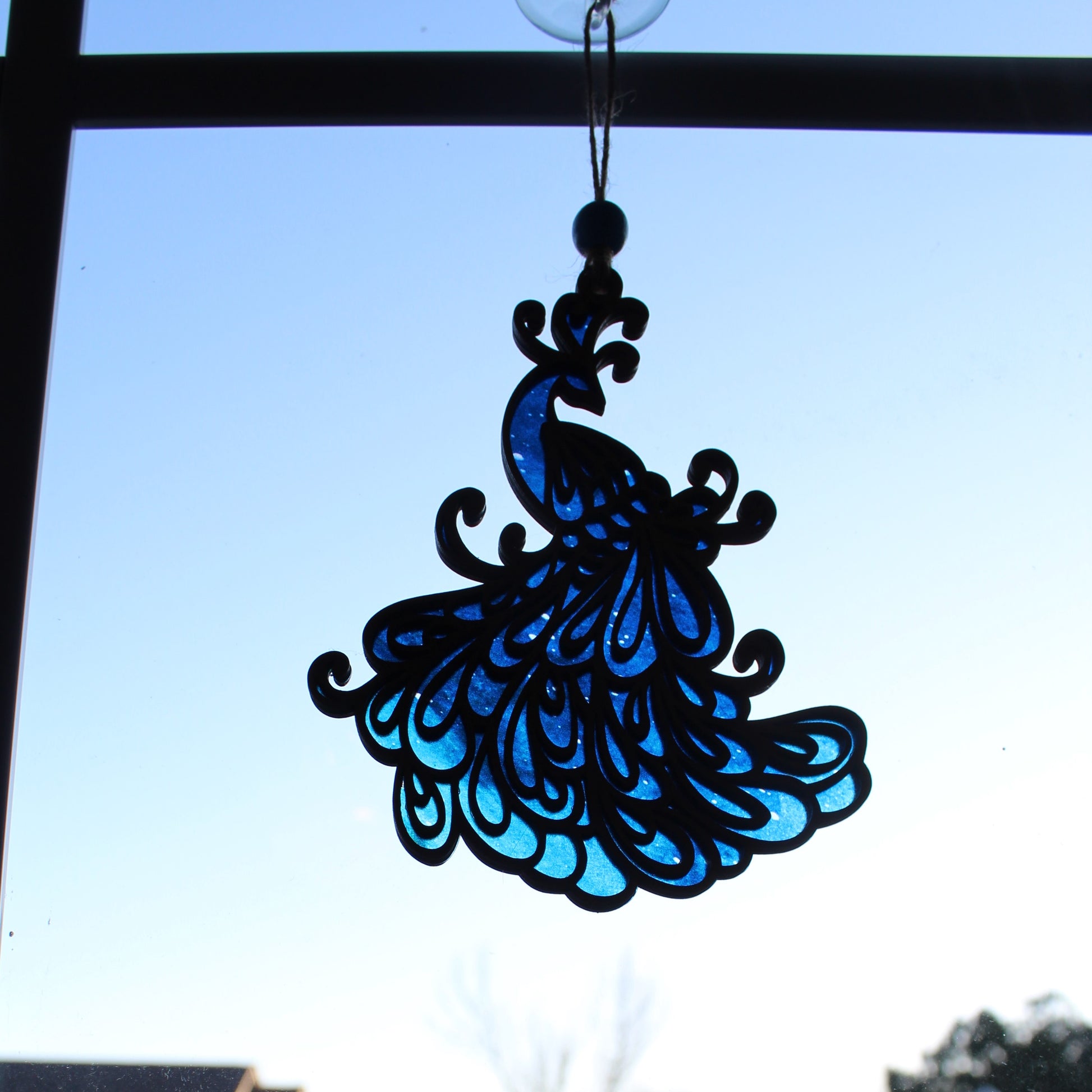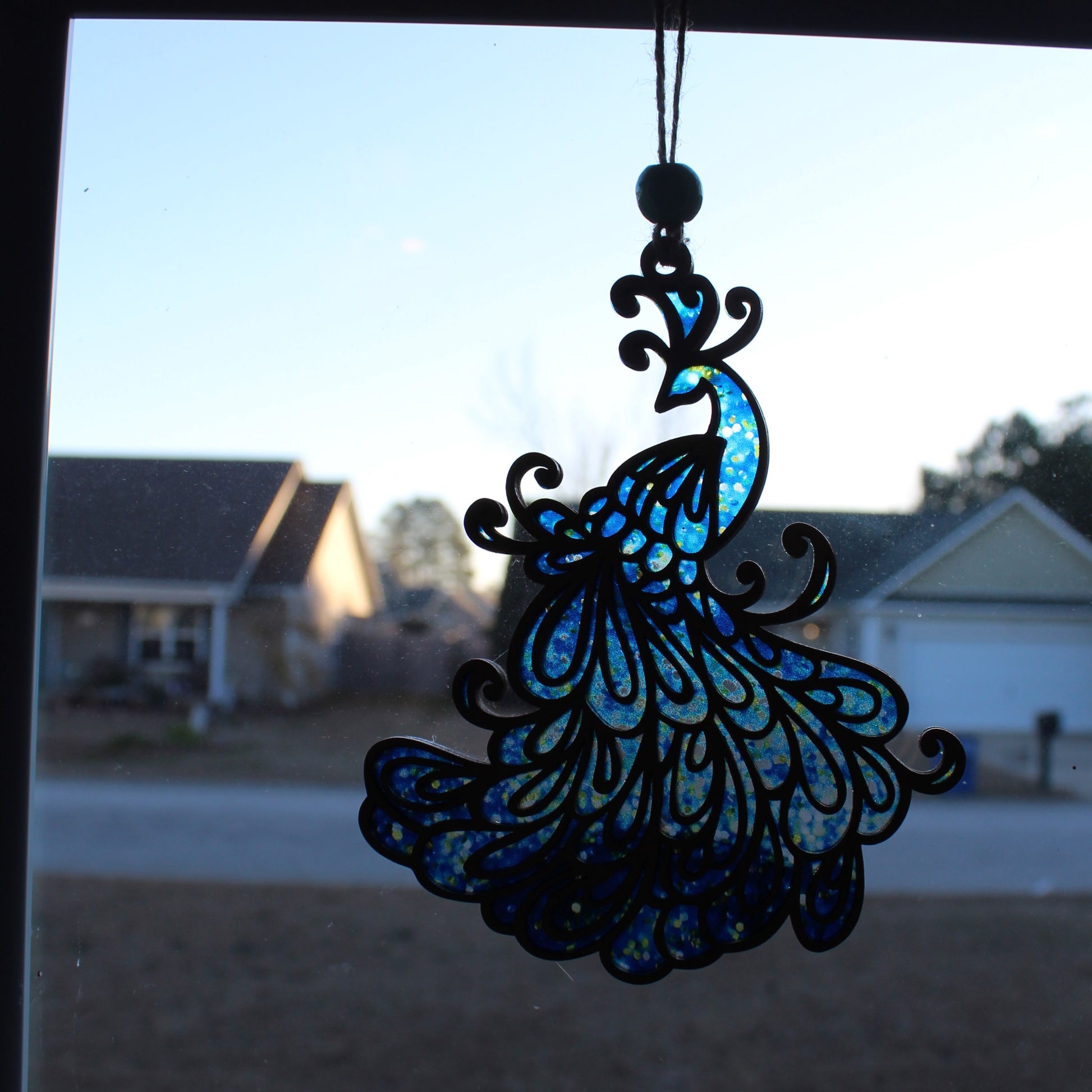 Wood pattern/color and "stained glass" colors may vary from piece to piece, making each and every suncatcher unique in its own way.
