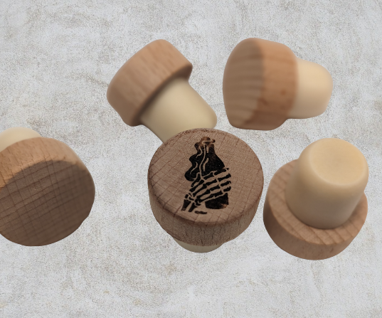 Wooden topped rubber wine stopper.