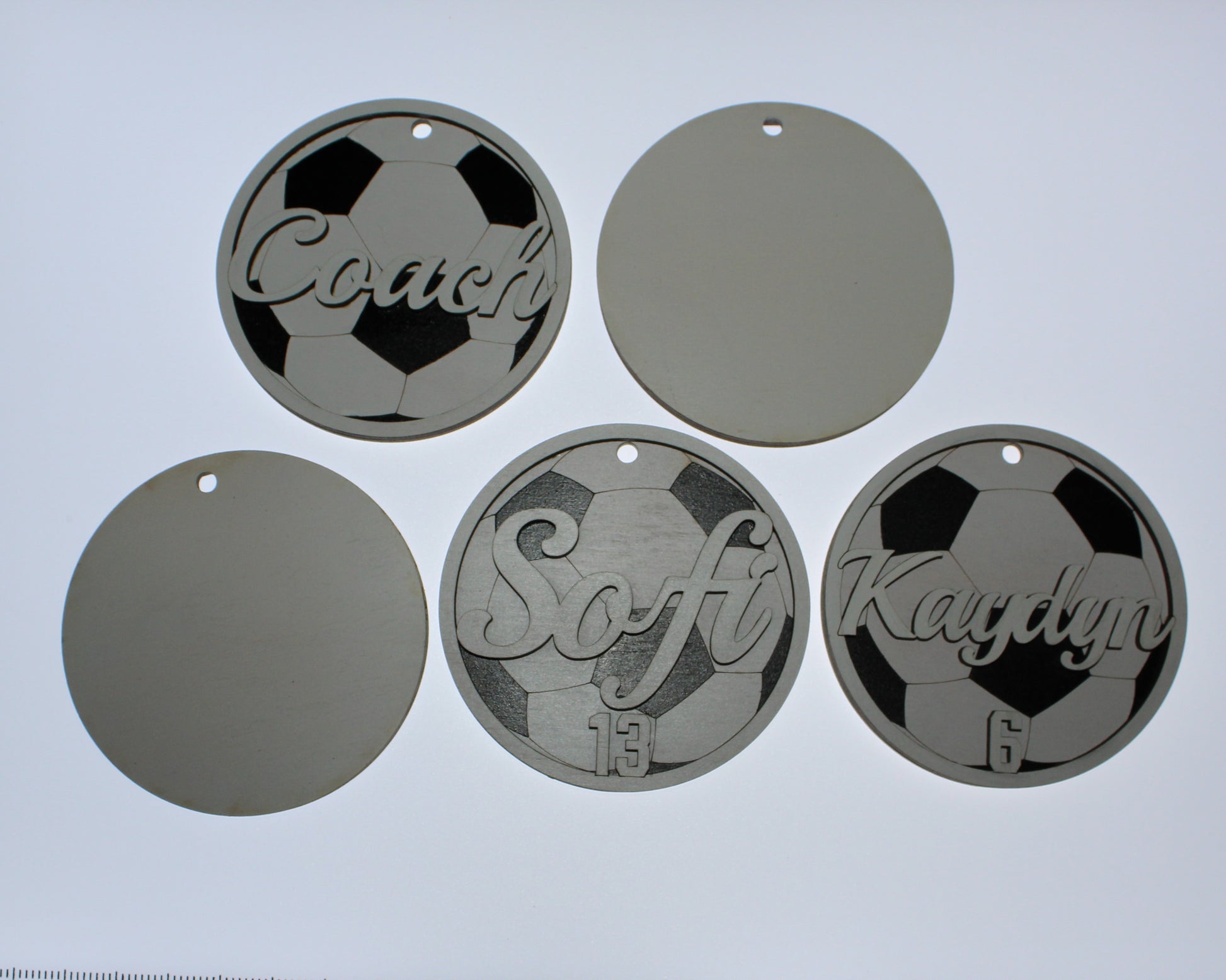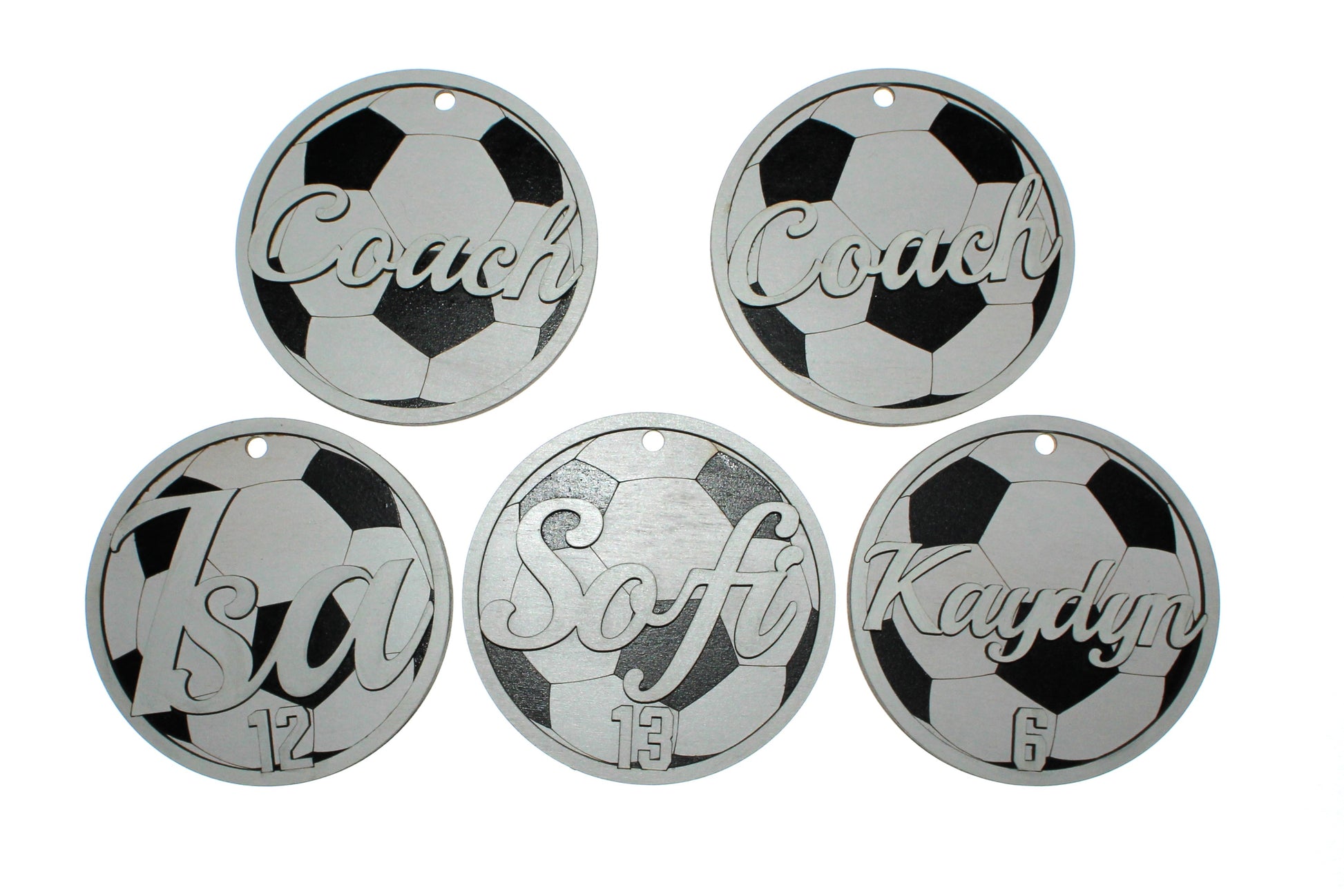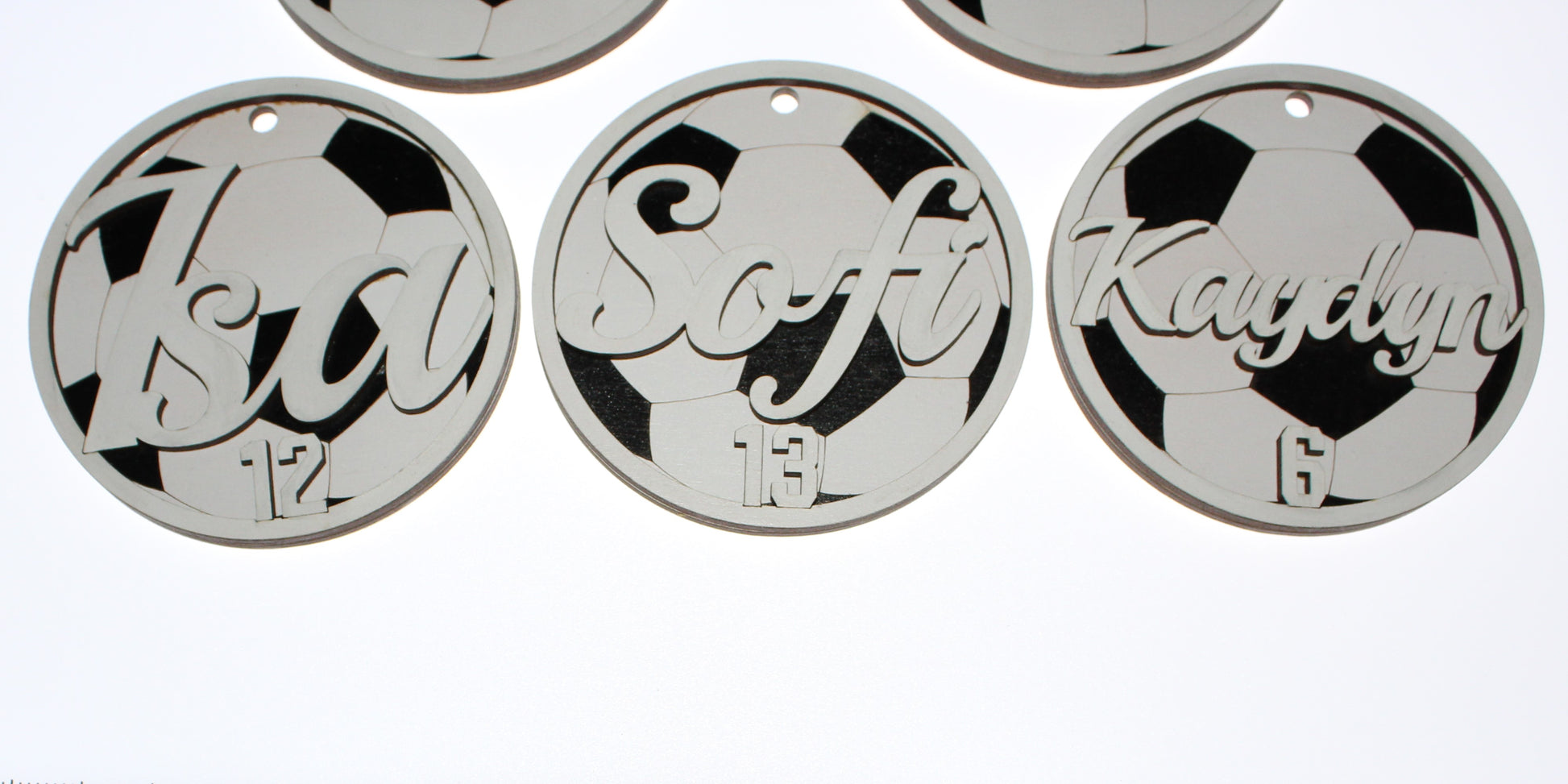 These wooden soccer balls are perfect for parents and players to add to their bag or used as an ornament.
