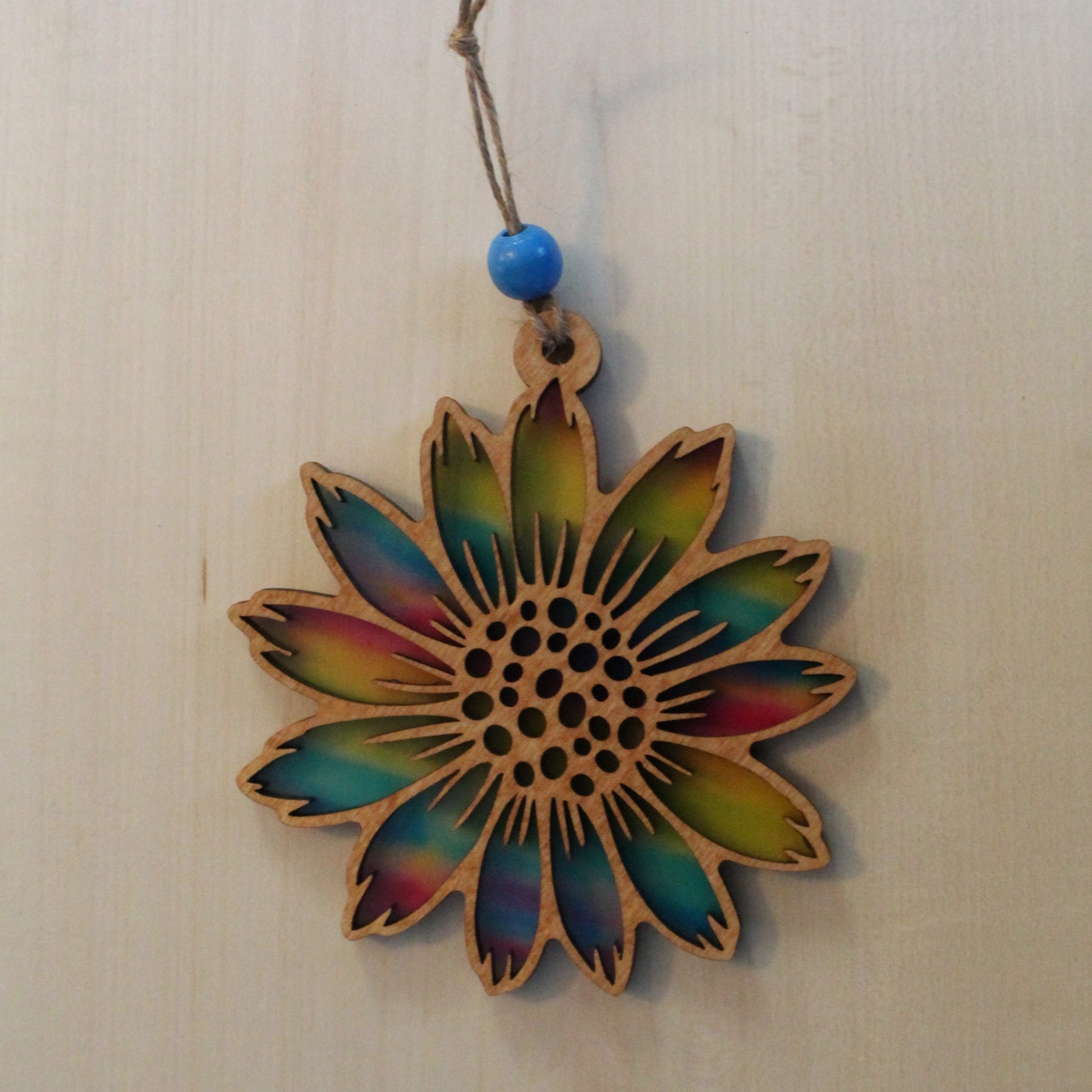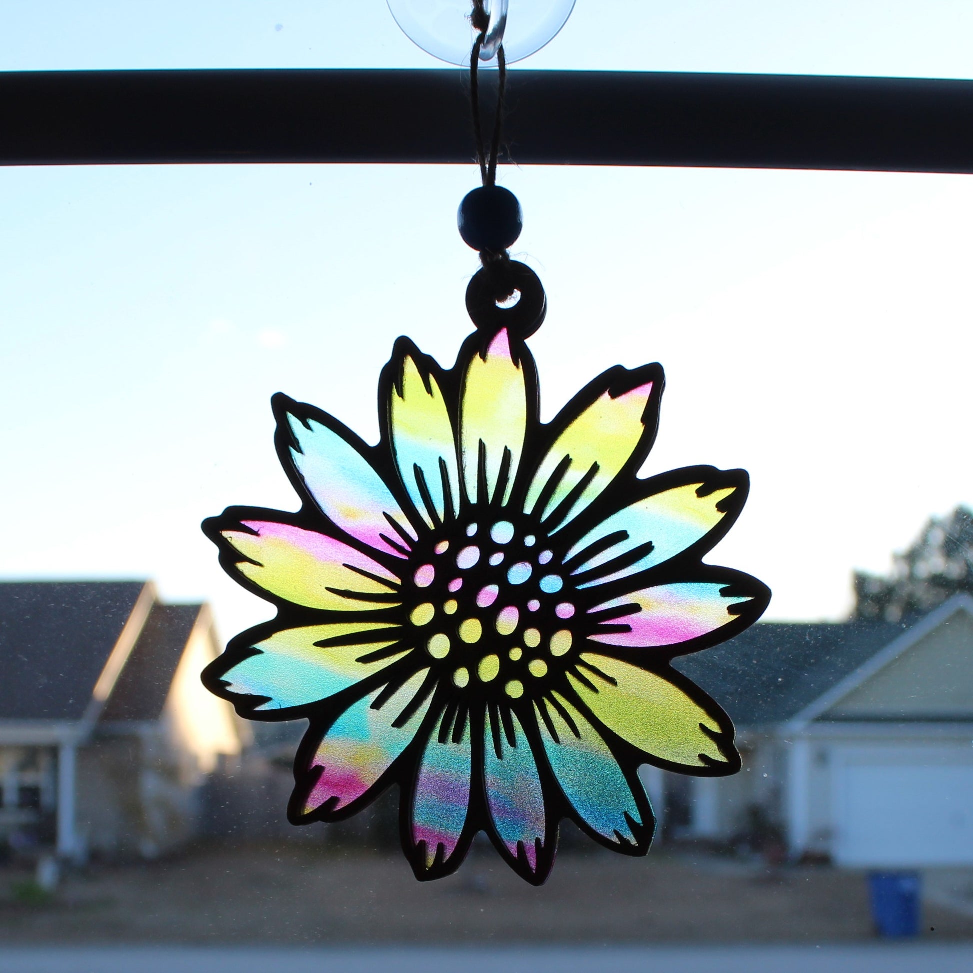 Wood pattern/color and "stained glass" colors may vary from piece to piece, making each and every suncatcher unique in its own way.