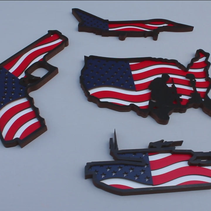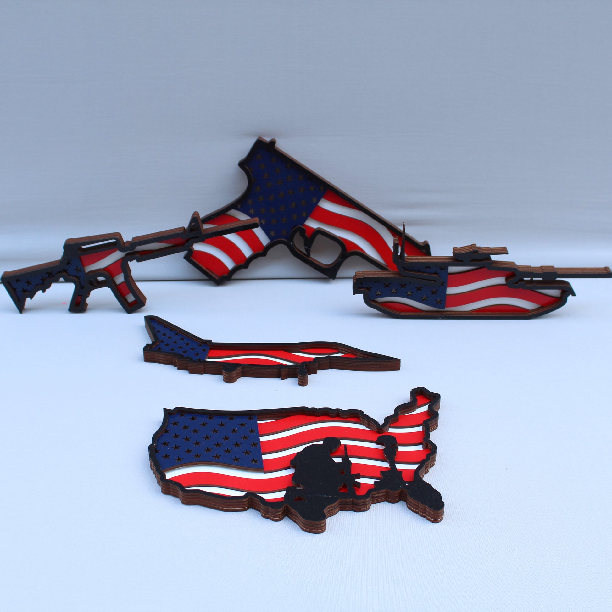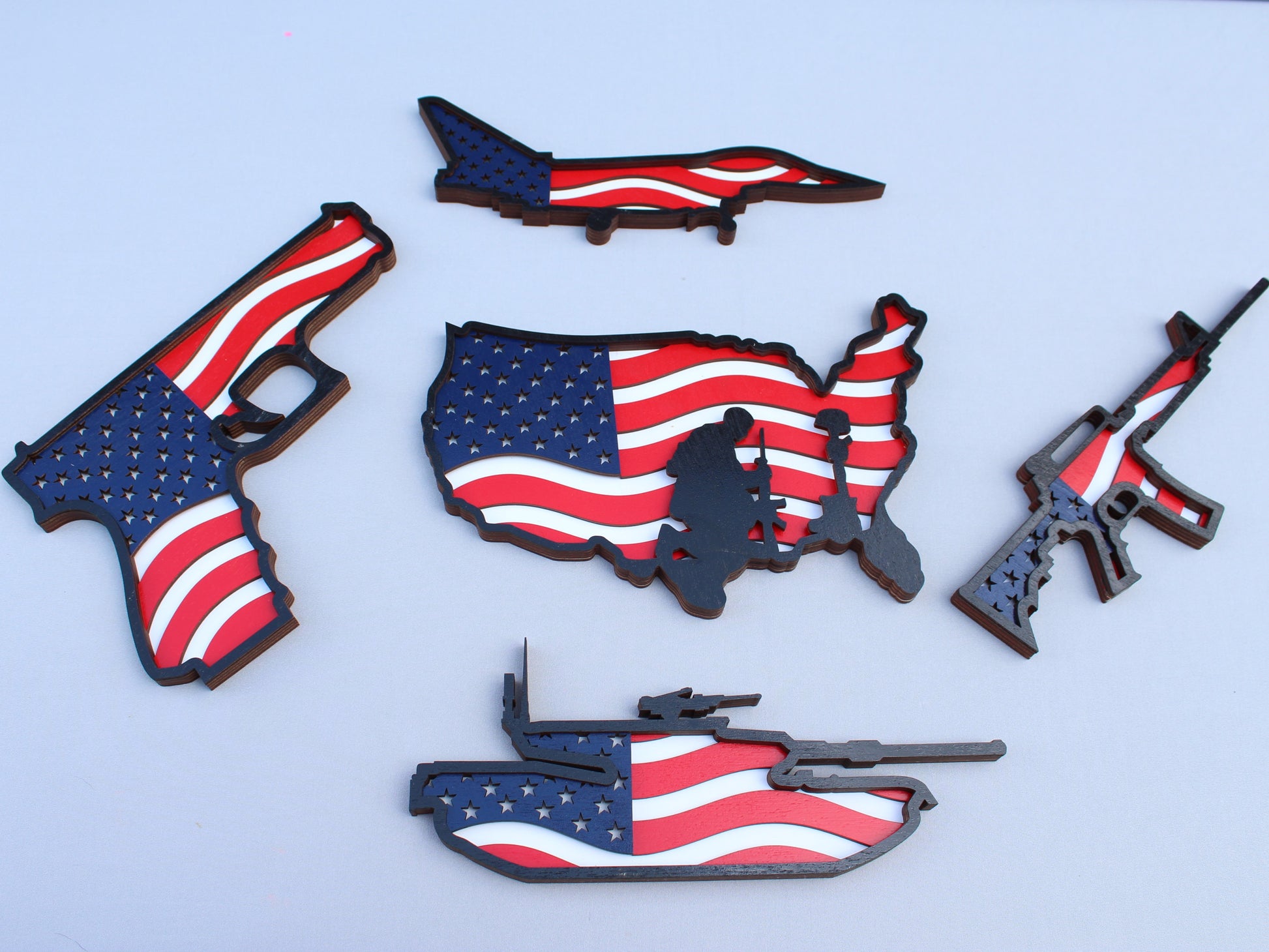 These handmade wooden flag cutouts are a great addition to your home or office. They are lightweight and can easily be hung using command strips.