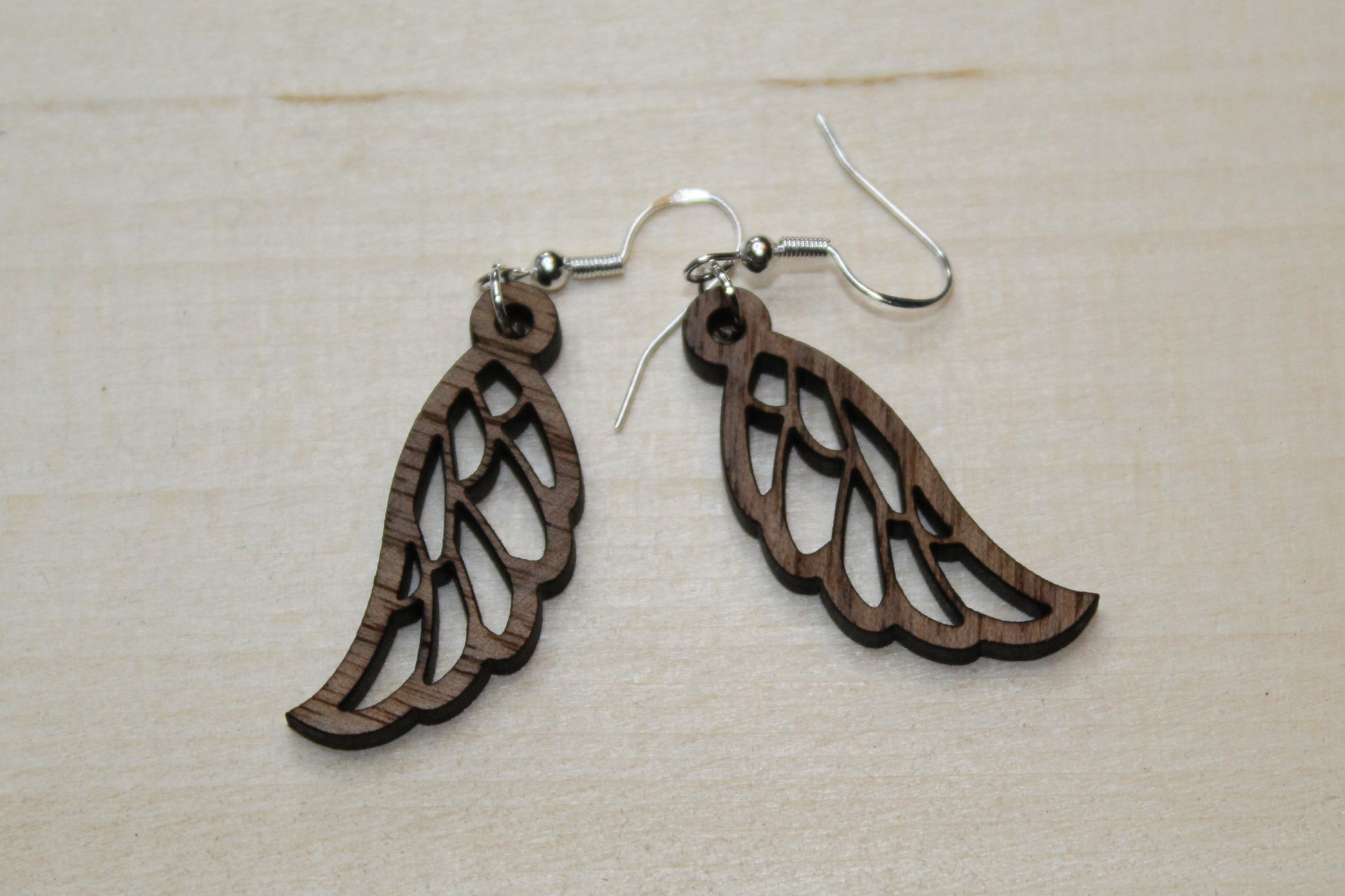 They are made from 1/8" thick walnut plywood and are sealed to resist scratching. The hooks are a sterling silver hypoallergenic earrings.